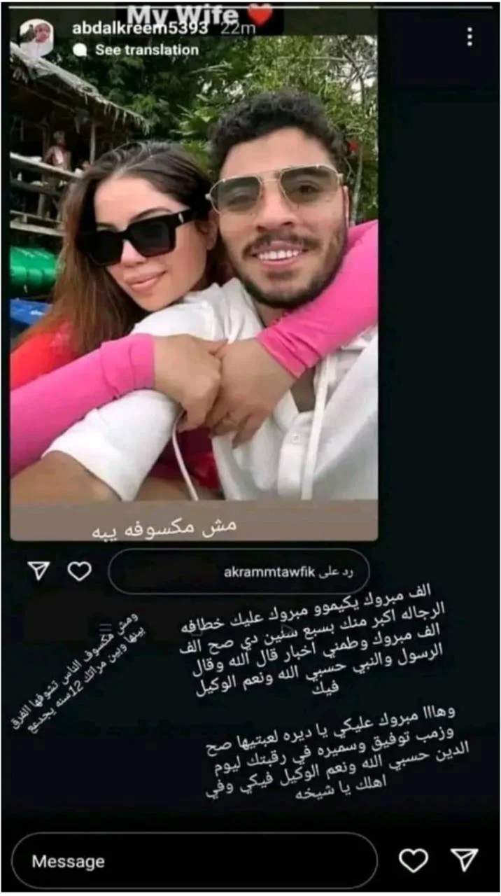 أشعلت شقيقة زوجة اللاعب أكرم توفيق لاعب النادي الأهلي، النار على زوجته الثانية هدير أبونار، بـ إستوري نشرتها على صفحتها الشخصية بموقع التواصل الإجتماعي إنستجرام.