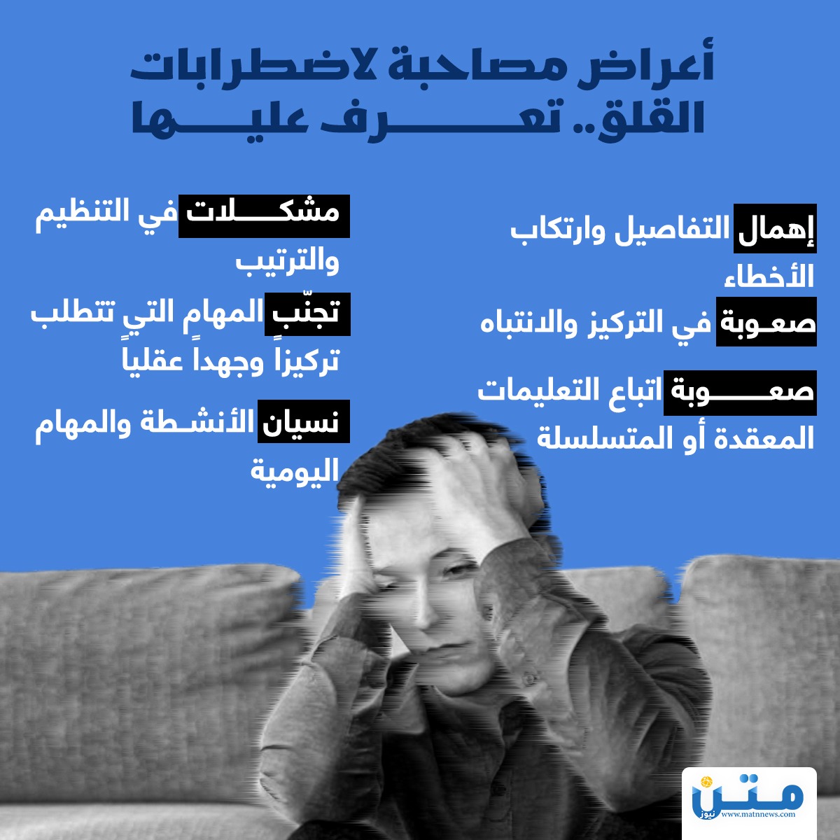 أعراض مصاحبة لاضطرابات القلق.. تعرف عليها (انفوجراف)