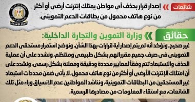 كشف المركز الإعلامى لمجلس الوزراء المصري إنه فى ضوء ما تم تداوله من أنباء بشأن إصدار قرار بحذف أي مواطن يمتلك إنترنت أرضي أو أكثر من نوع هاتف محمول من بطاقات الدعم التمويني.