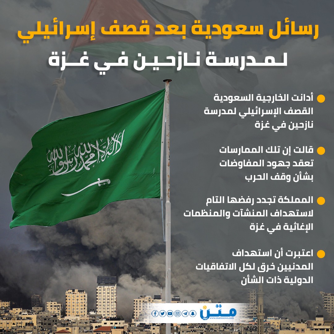 رسائل سعودية بعد قصف إسرائيلي لمدرسة نازحين في غزة (إنفوجراف)