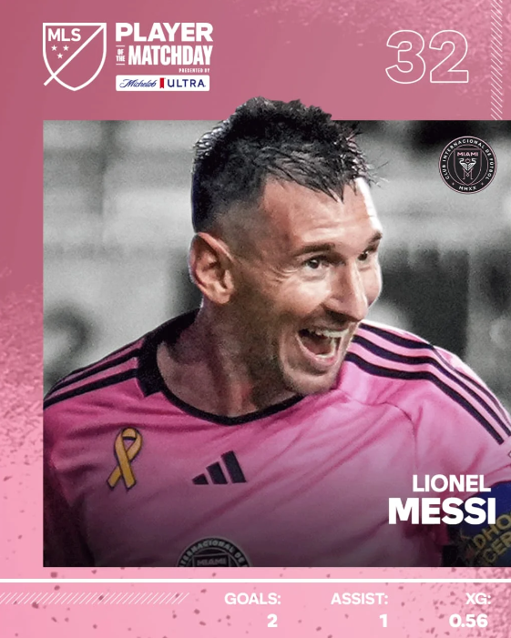 وفاز ميسي بجائزة أفضل لاعب في الدوري الأمريكي لهذا الأسبوع، بعدما ساهم في الأهداف الثلاثة حيث سجل ليو هدفين، وصنع الثالث لزميله لويس سواريز.