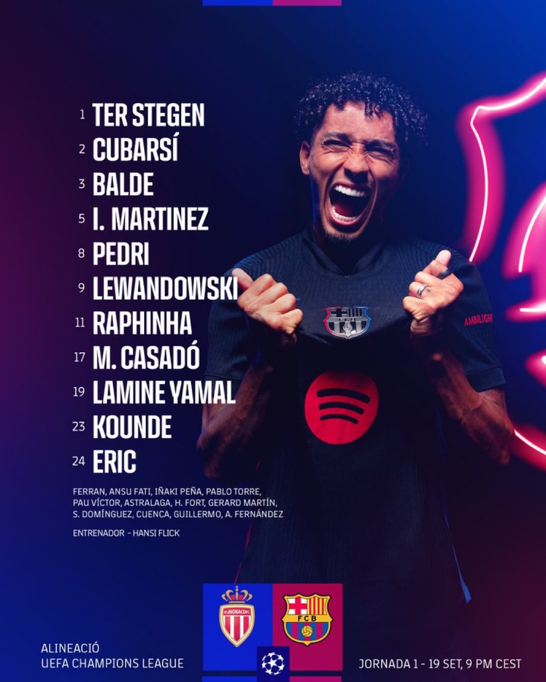 لامين يامال يقود تشكيل برشلونة لمواجهة موناكو بدوري أبطال أوروبا