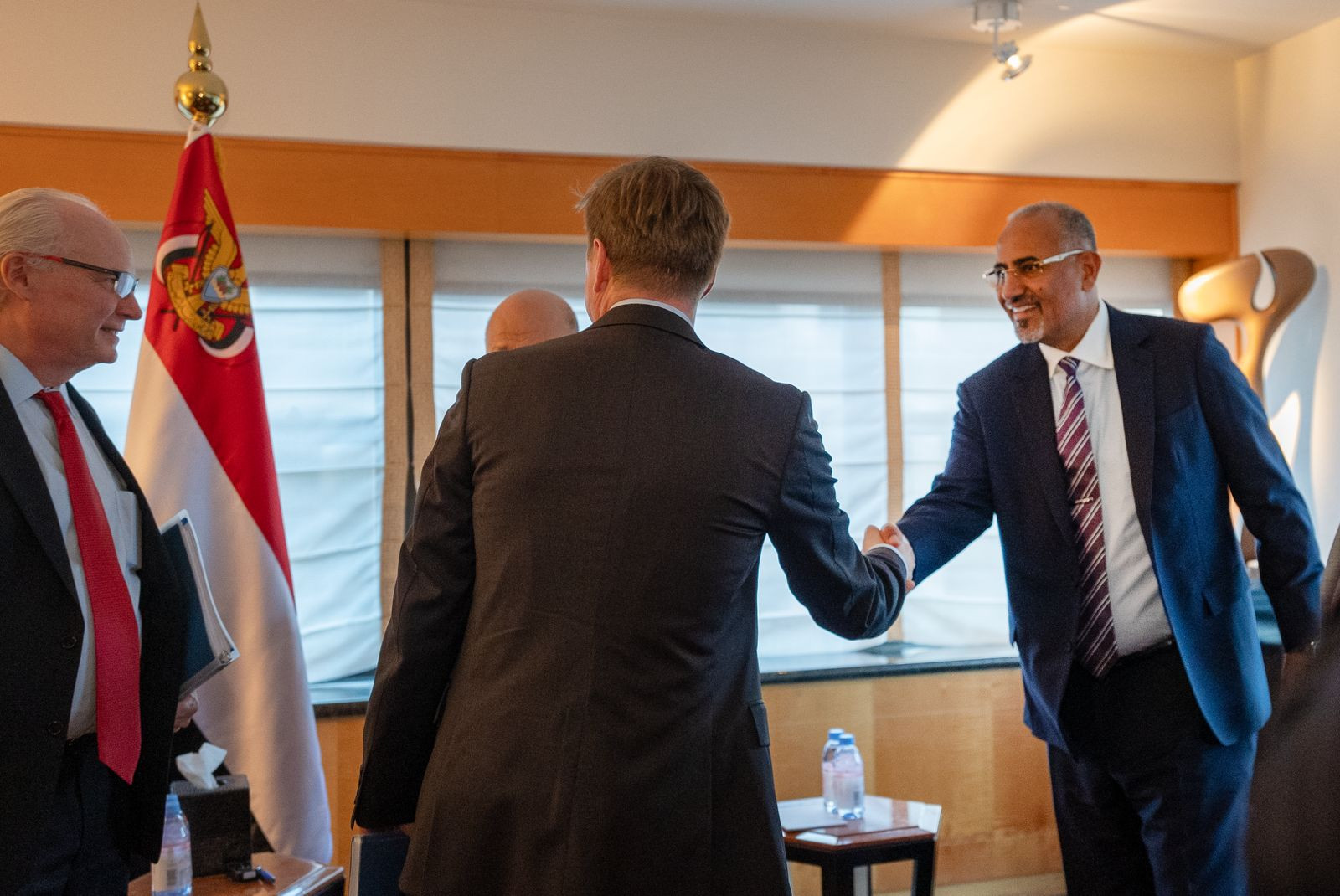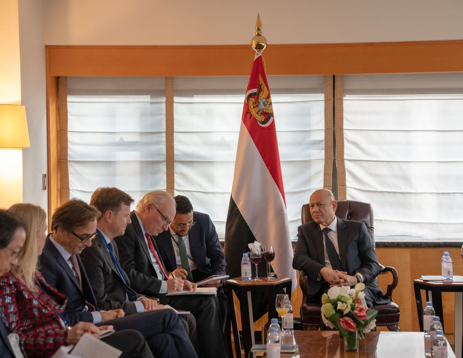 وجرى خلال اللقاء، الذي حضره وزير خارجية اليمن الدكتور شائع الزنداني، استعراض وبحث مستجدات الأوضاع السياسية والإنسانية والأمنية في بلدنا، والضغوط المطلوبة من المجتمع الدولي والقوى الكبرى لدفع المليشيات الحوثية على التعاطي الجاد مع الجهود المبذولة إقليميا ودوليا للوصول إلى سلام عادل وشامل ومستدام في بلادنا والمنطقة.