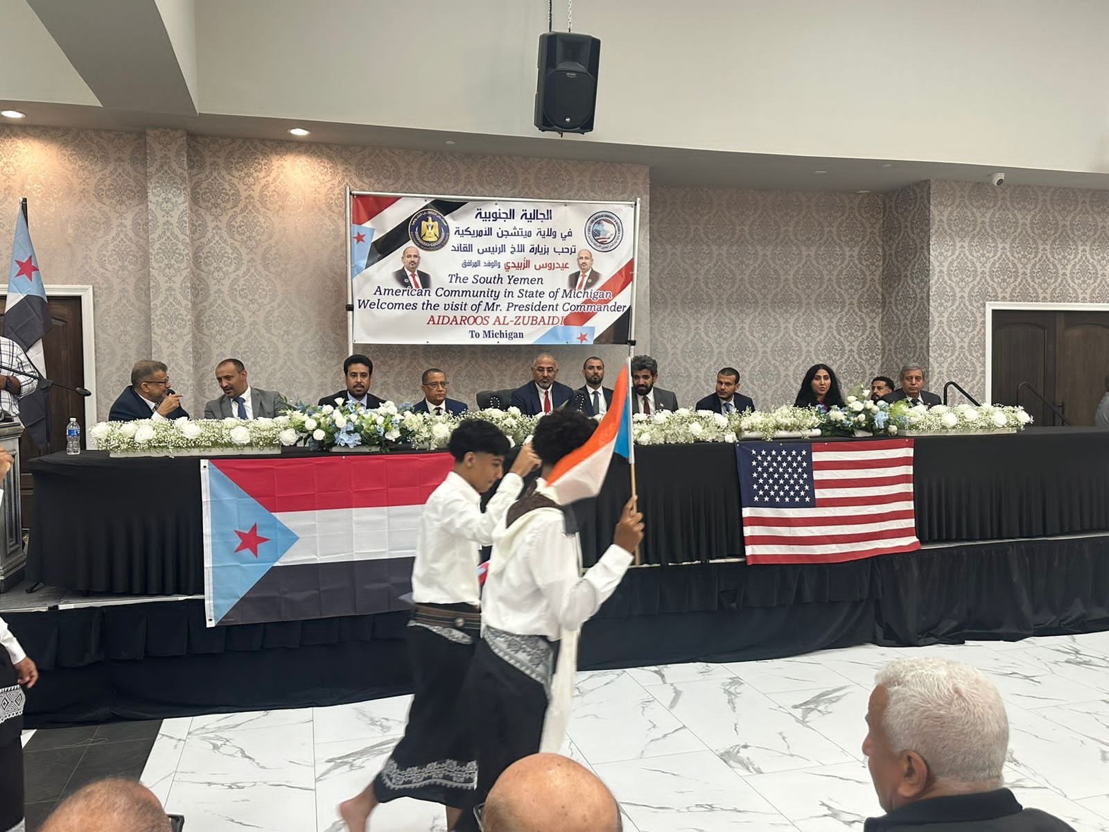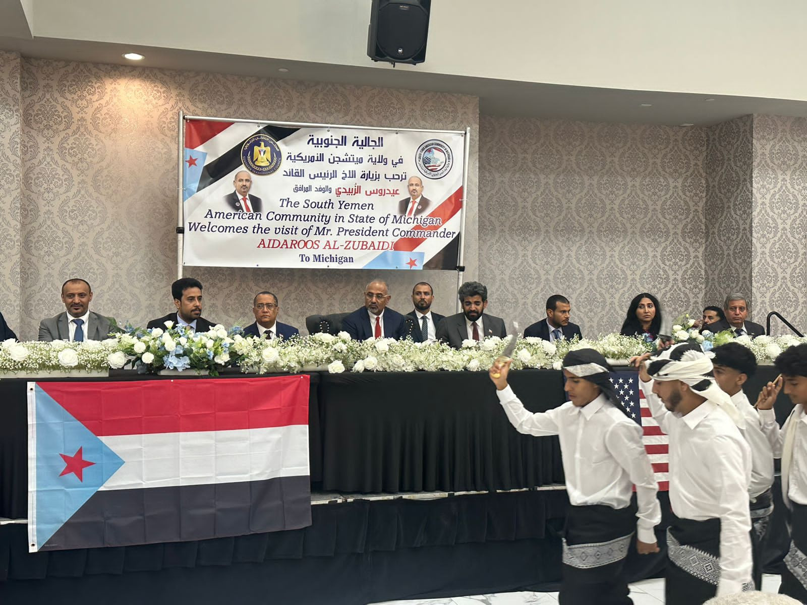 شهد اللواء عيدروس قاسم الزُبيدي رئيس المجلس الانتقالي الجنوبي، نائب رئيس مجلس القيادة الرئاسي باليمن، الحفل الذي أقامته الجالية الجنوبية، في ولاية ميتشجين الأمريكية على شرف زيارته الثانية والوفد المرافق له، للولايات المتحدة الأمريكية.