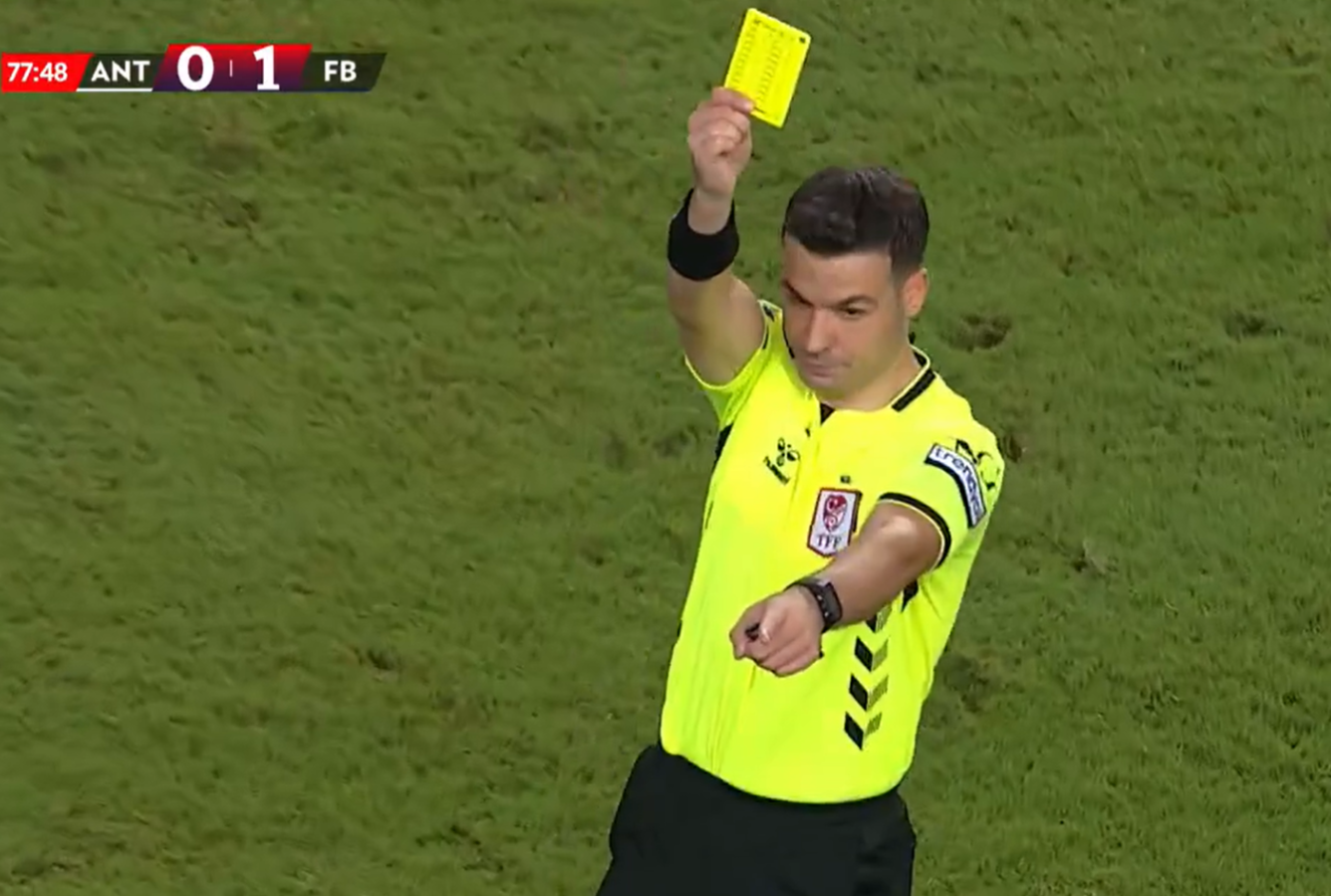 وبعد تلك اللقطة، أصر حكم اللقاء، على إعطاء البطاقة الصفراء لـ جوزيه مورينيو المدير الفني لفريق فنربخشة التركي.