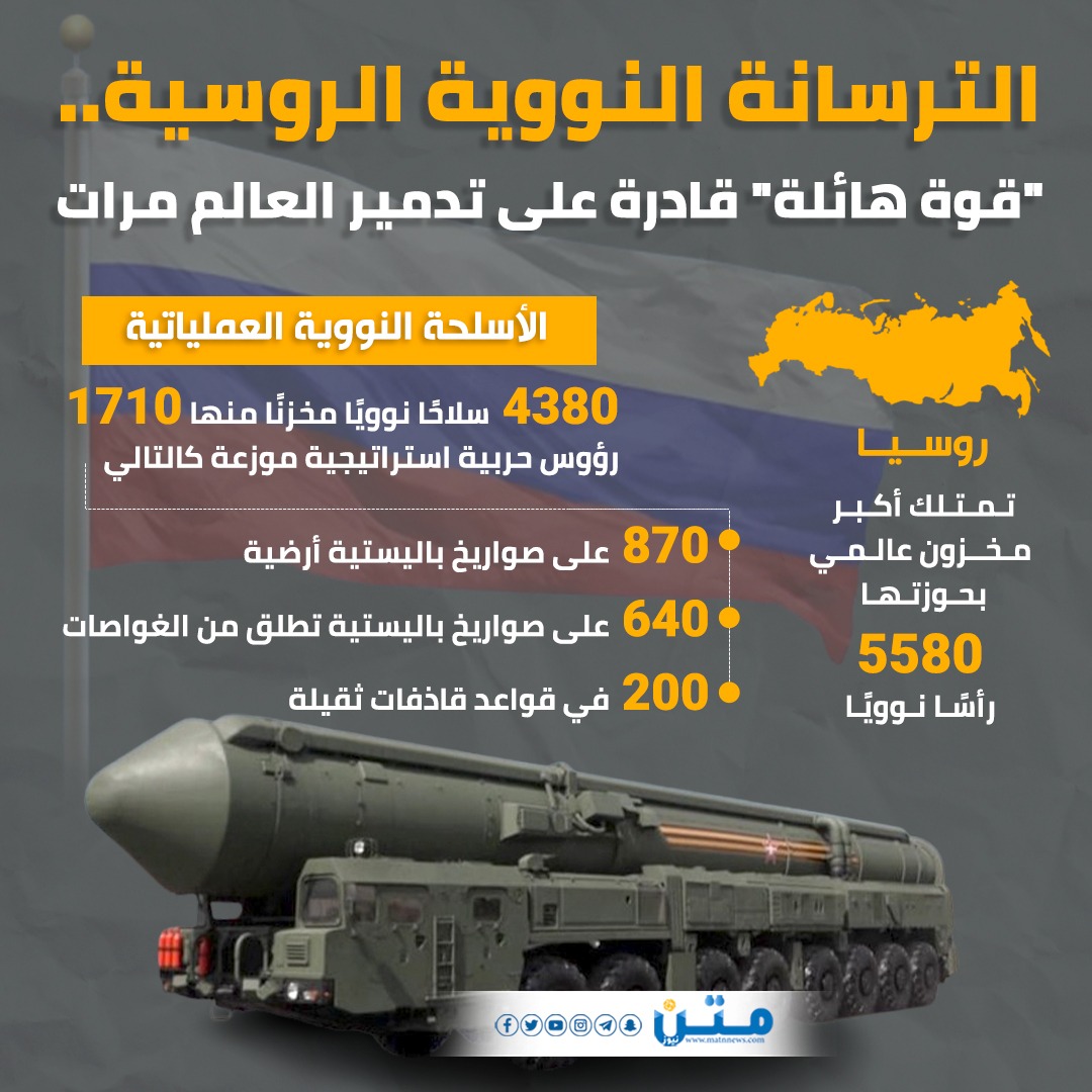 الترسانة النووية الروسية.. "قوة هائلة" قادرة على تدمير العالم مرات (انفوجراف)
