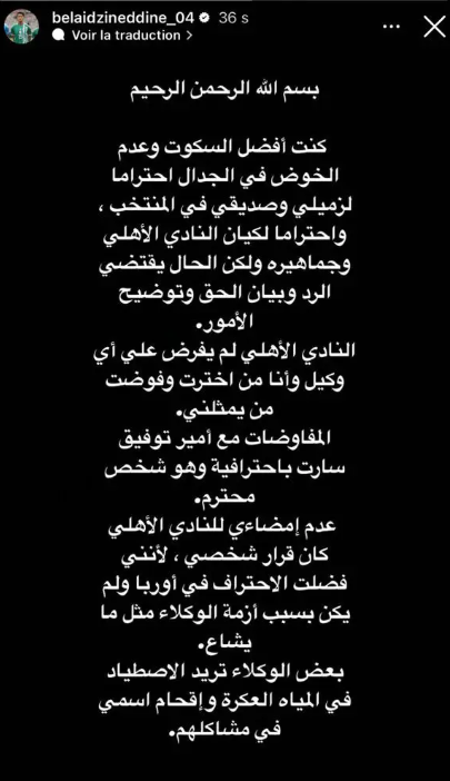 الأهلي تفاوض باحتراف.. زين الدين بلعيد يرد على تصريحات قندوسي في بيان رسمي