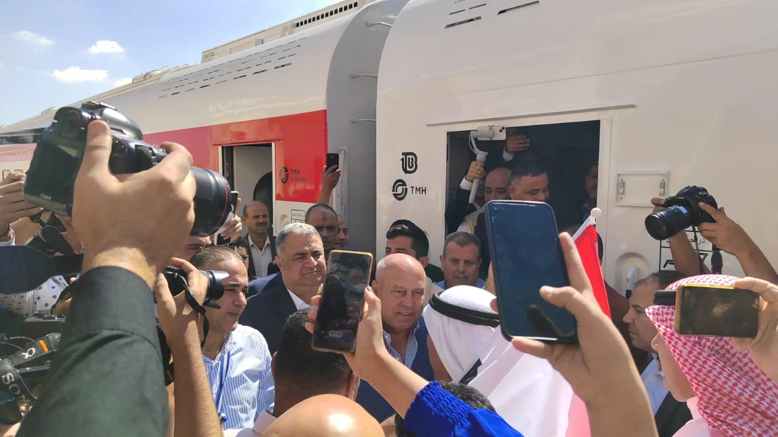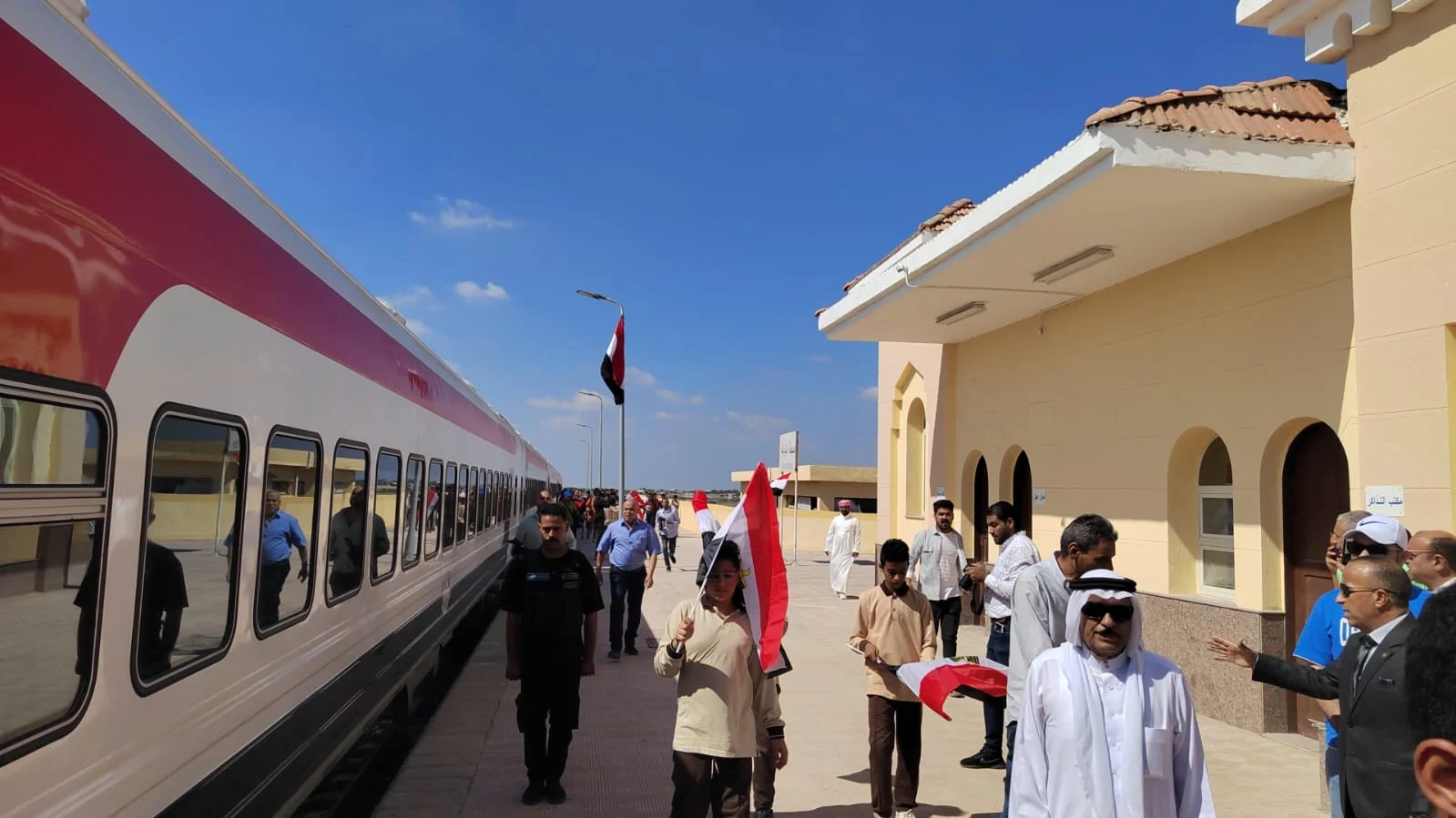 بعد عودة حركة القطارات.. أهالى سيناء وطلاب المدارس يستقبلون قطار الركاب بالأعلام وهتاف تحيا مصر (صور)