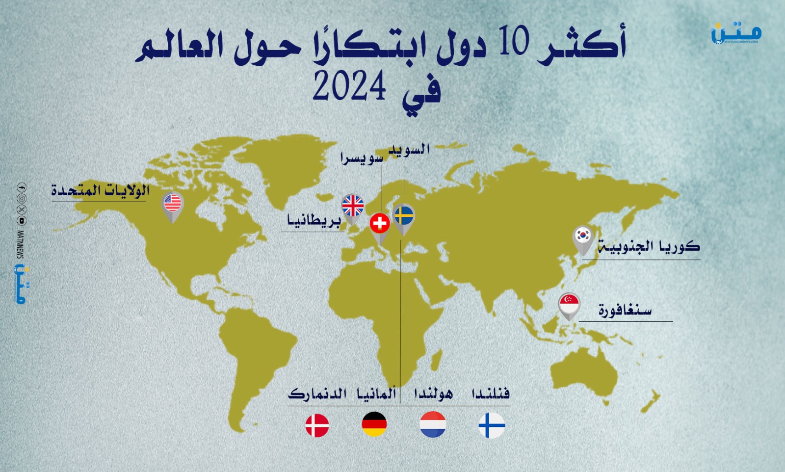 أكثر 10 دول ابتكارًا حول العالم في 2024 (إنفوجراف) الإثنين 07/أكتوبر/2024 - 08:07 م 10/7/2024 8:07:27 PM انفوجراف متن محمد حسن شارك طباعة 1. سويسرا2. السويد 3. أمريكا 4. سنغافورة5. بريطانيا6. كوريا الجنوبية7. فنلندا8. هولندا9. ألمانيا10. الدنمارك شارك سنغافورة سويسرا كوريا الجنوبية إنفوجراف الدنمارك الجنوب العالم بريطانيا