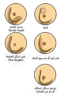 - انقلاب الحلمة إلى الداخل مع ظهور قشور أو إفرازات غير طبيعية عليها.