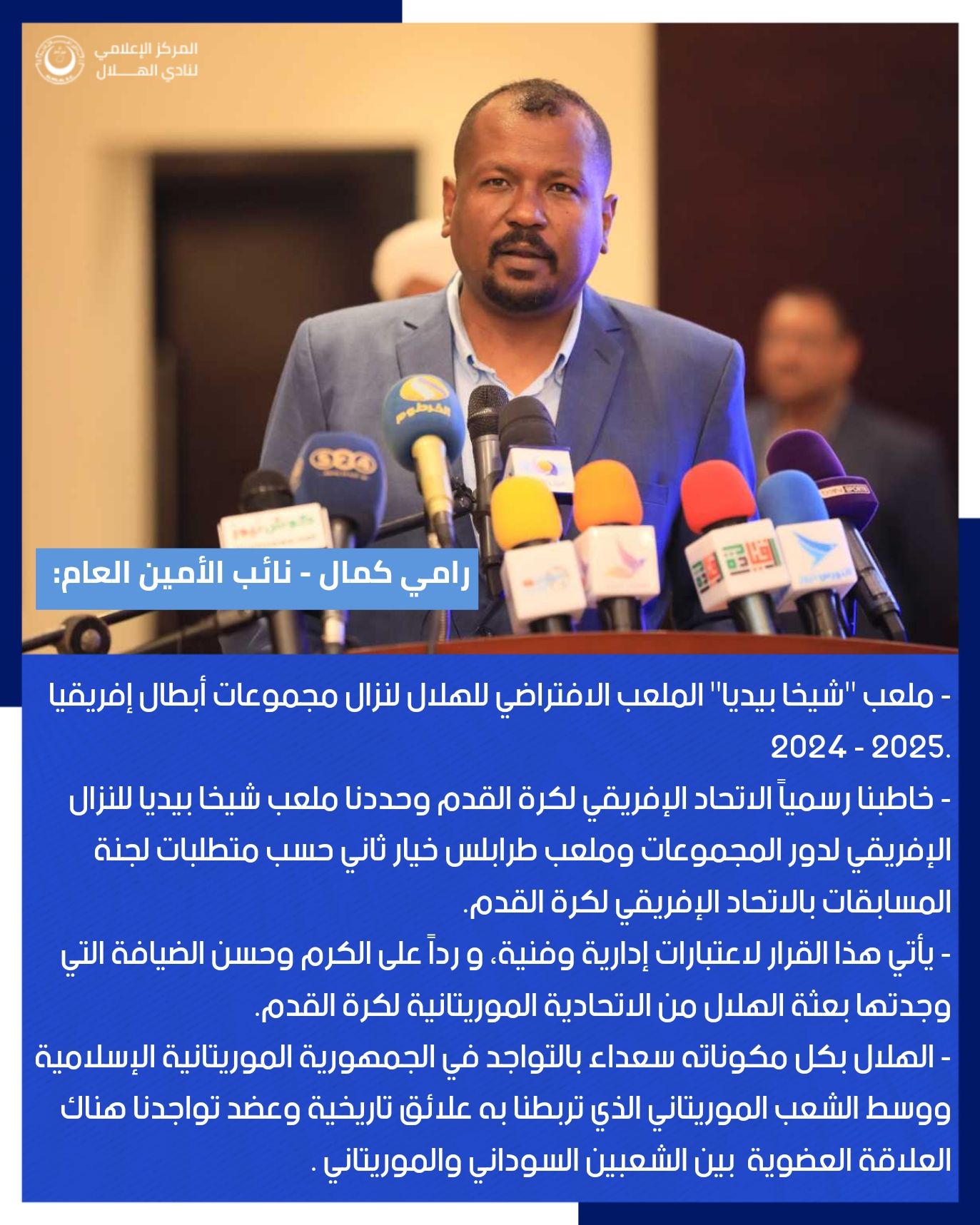أعلن رامي كمال رئيس الإعلام في نادي الهلال السوداني، الملاعب التي ستستضيف مباريات الفريق في دوري أبطال إفريقيا موسم 2024-25.