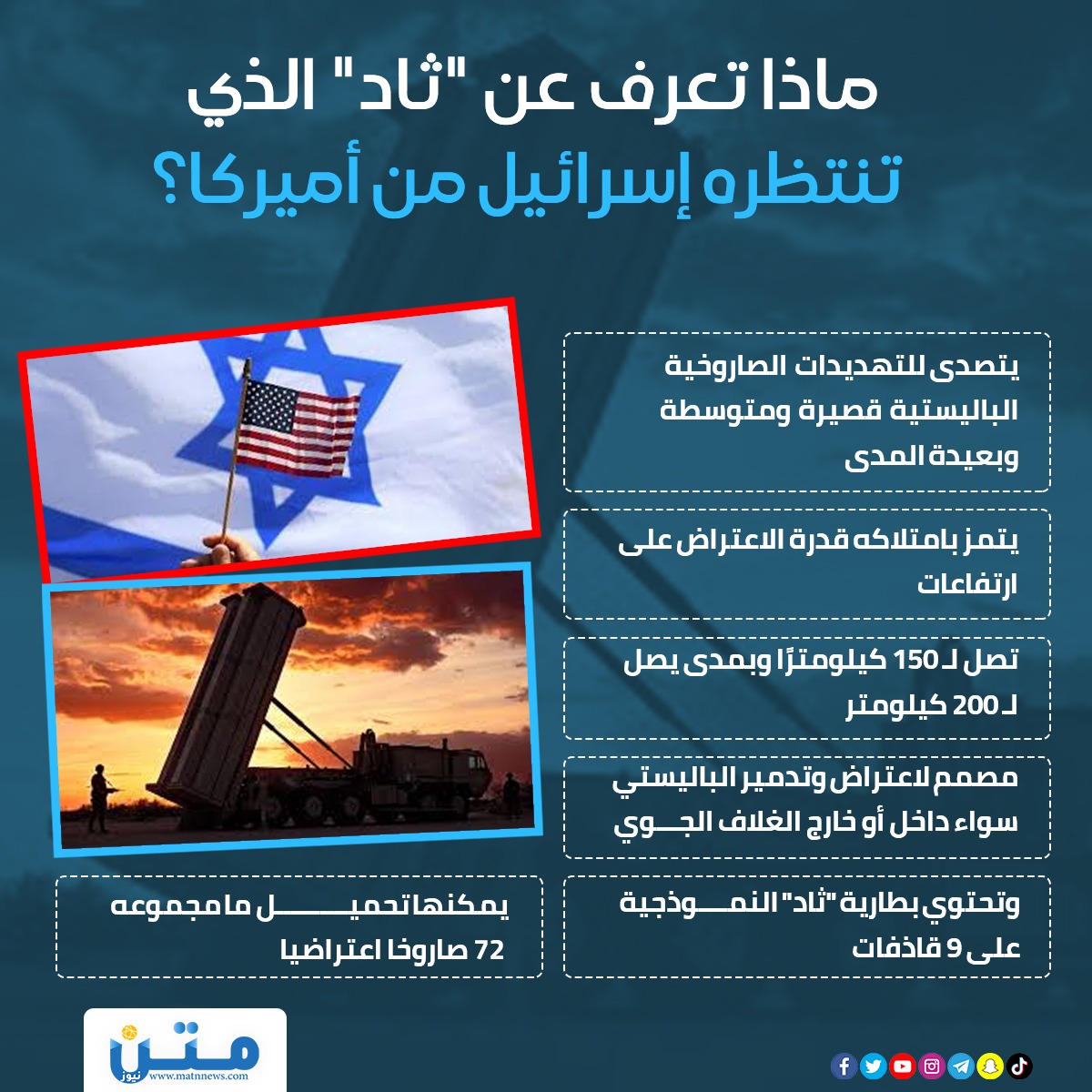 ماذا تعرف عن "ثاد" الذي تنتظره إسرائيل من أميركا؟ (إنفوجراف)