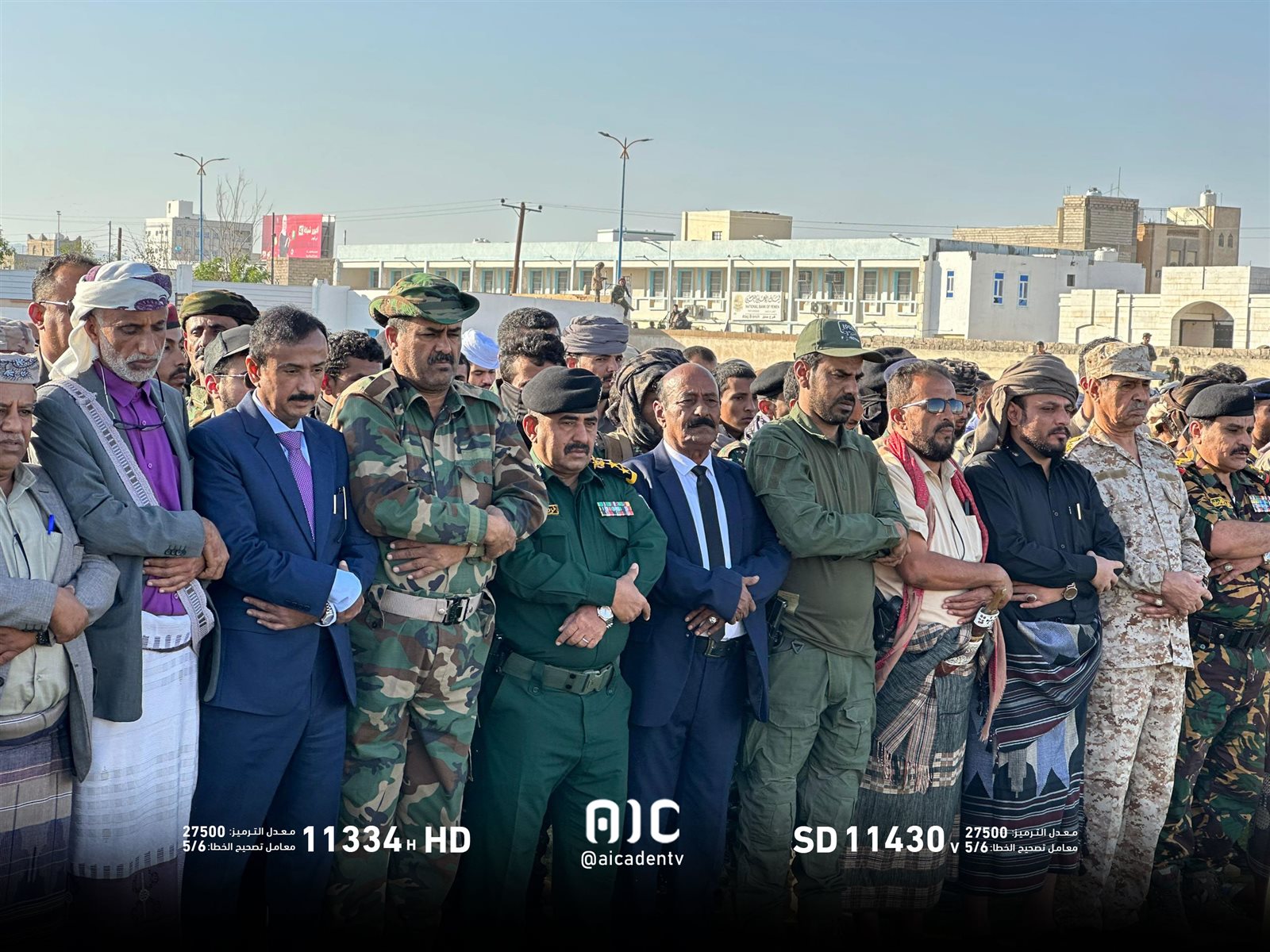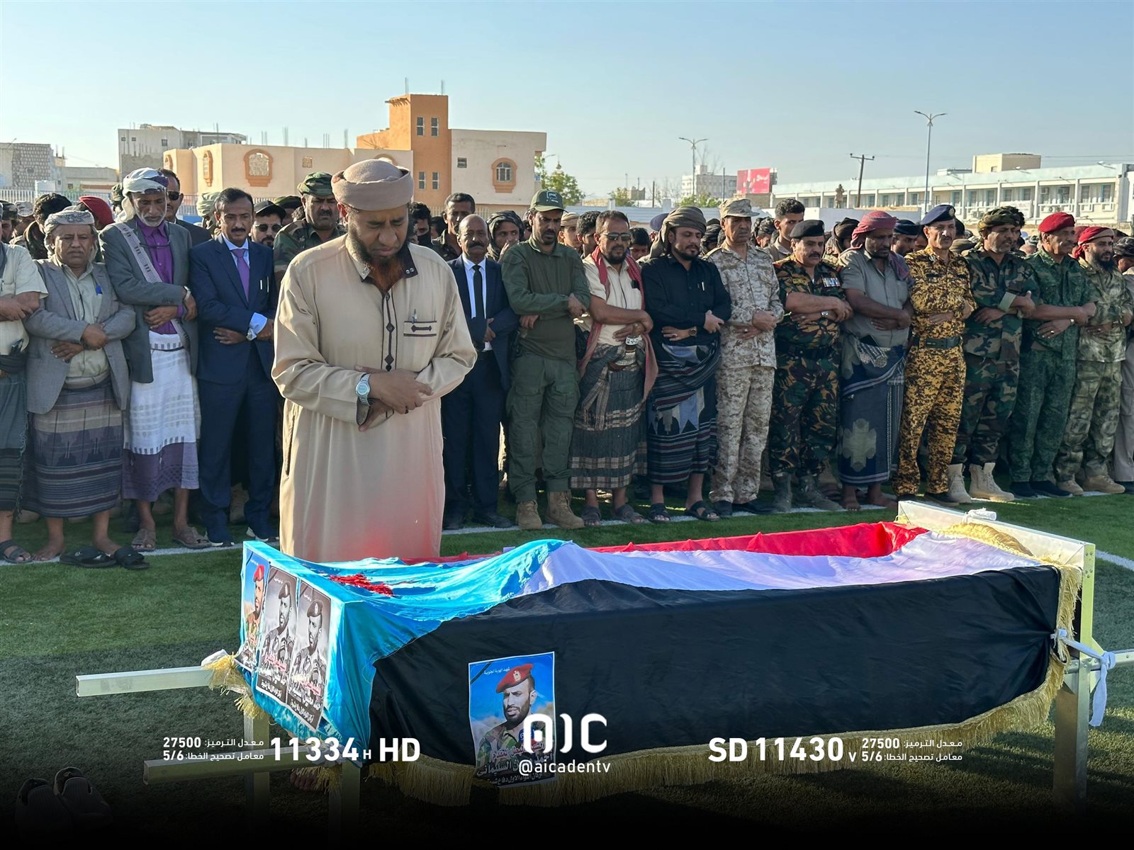 شاهد.. صور من مراسم تشييع جثمان الشهيد العقيد أحمد السليماني في شبوة