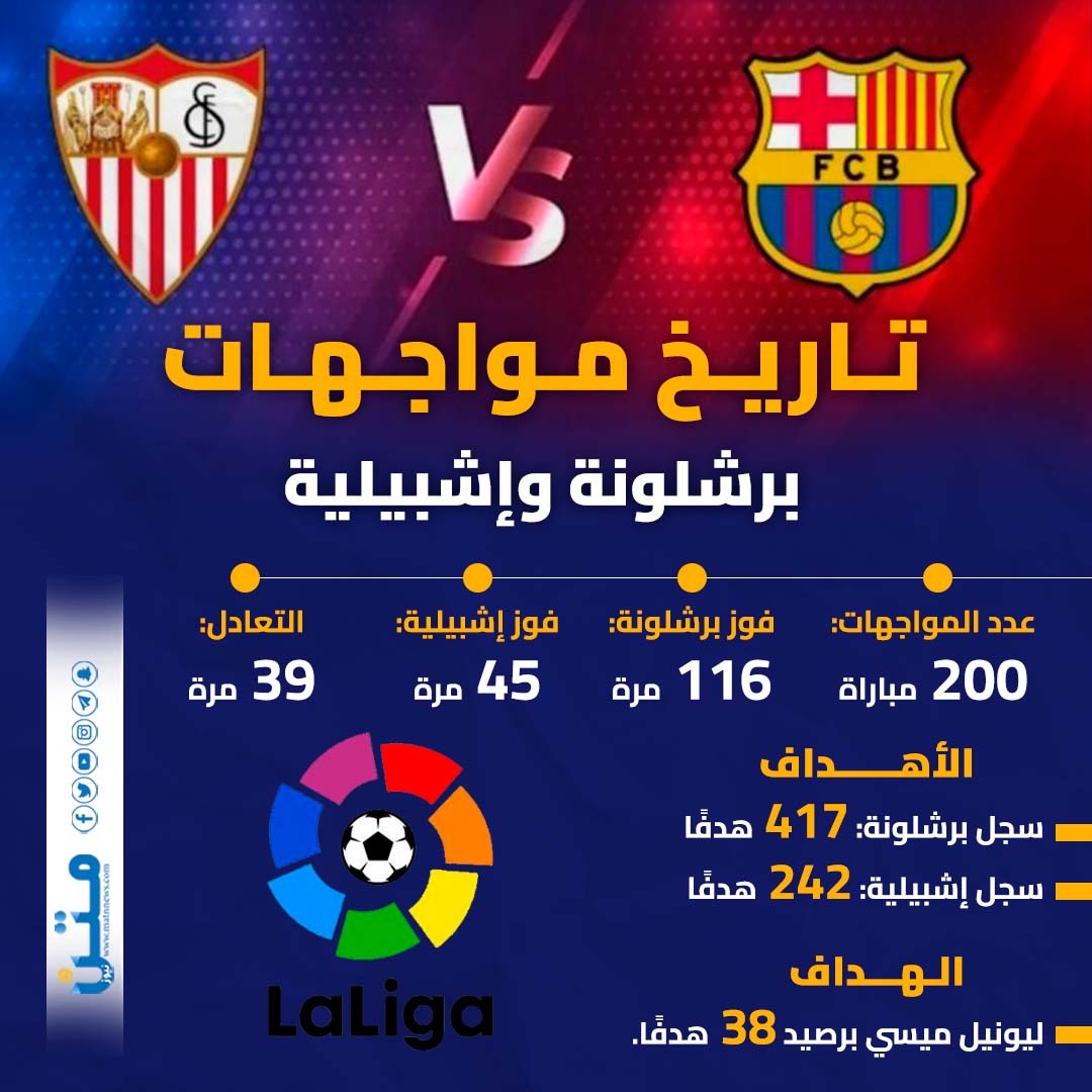 تاريخ مواجهات برشلونة وإشبيلية قبل مباراة اليوم (انفوجراف)
