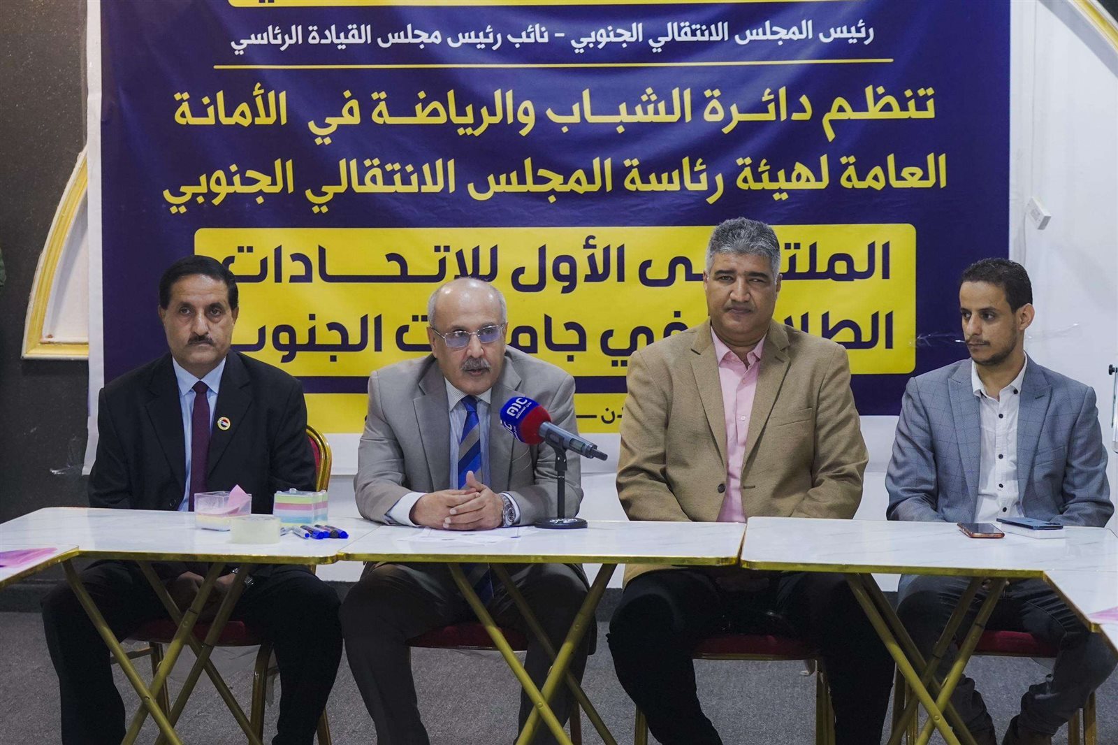 وبدوره، أكد الكريحي كنعان، رئيس دائرة الشباب والرياضة في الأمانة العامة لهيئة رئاسة المجلس الانتقالي الجنوبي، أن هذا الملتقى هو الأول من نوعه للاتحادات الطلابية في جامعات الجنوب، ويهدف إلى تأسيس حلقة نقاش بين الاتحادات الطلابية، لتوحيد العمل الطلابي والخروج بمصفوفة احتياجات للطلاب في الجامعات ورفعها إلى الجهات ذات الاختصاص.