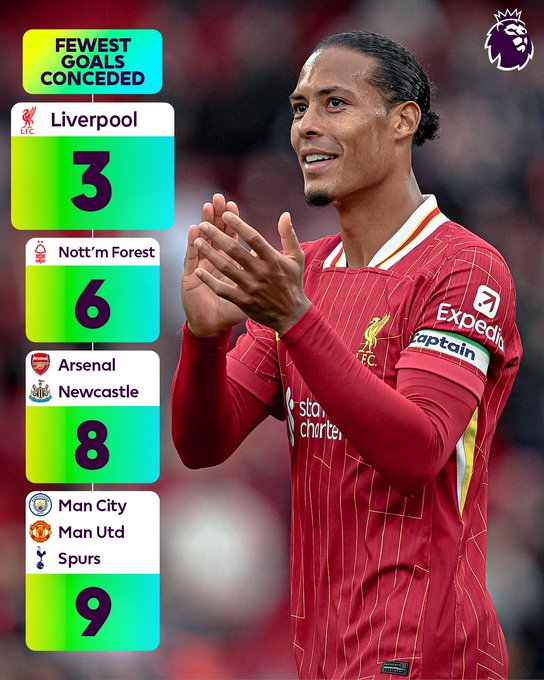 تغنت رابطة الدوري الإنجليزي الممتاز "البريمرليج" بدفاع فريق ليفربول، بعد مرور 8 جولات من الموسم الحالي 2024-2025.