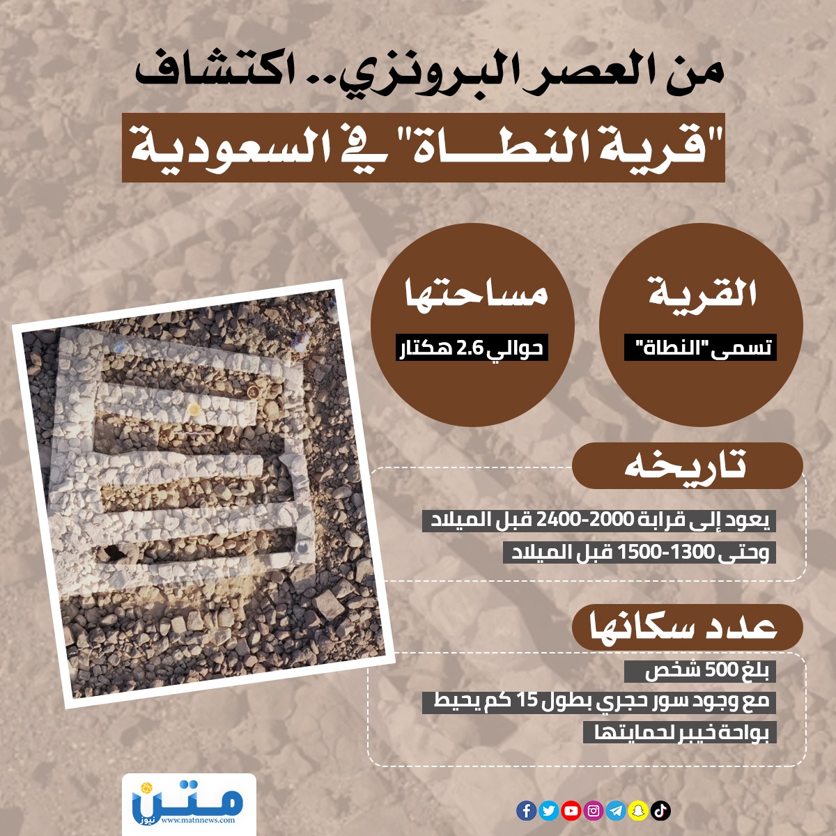 من العصر البرونزي.. اكتشاف "قرية النطاة" في السعودية (انفوجراف)