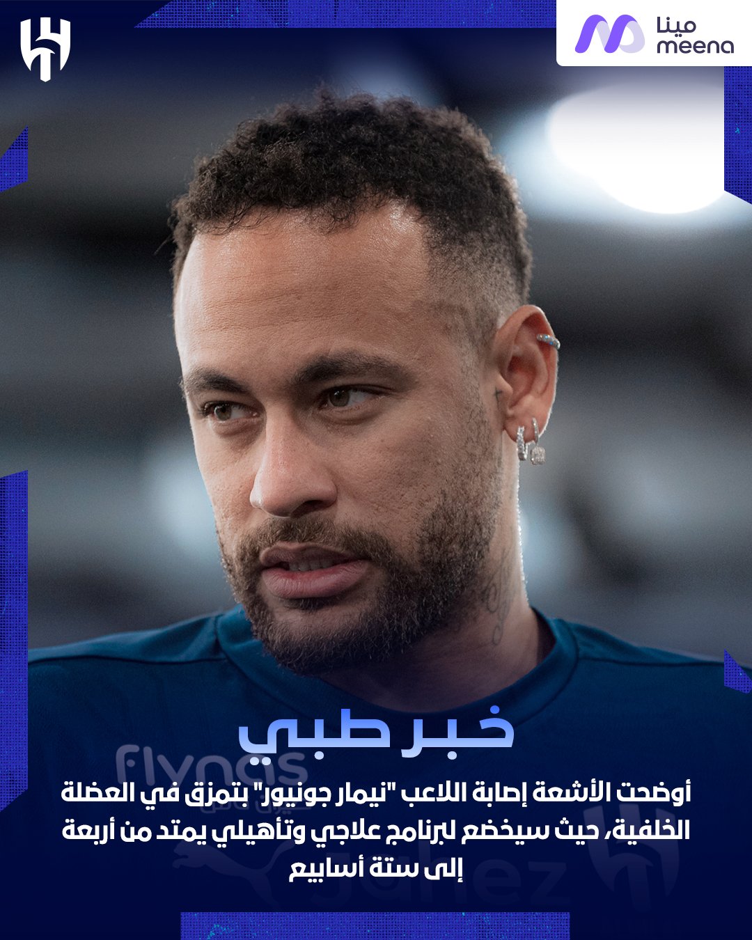 أعلن نادي الهلال السعودي، بشكل رسمي، مساء اليوم الأربعاء، تفاصيل إصابة ومدة غياب نجمه البرازيلي نيمار جونيور.
