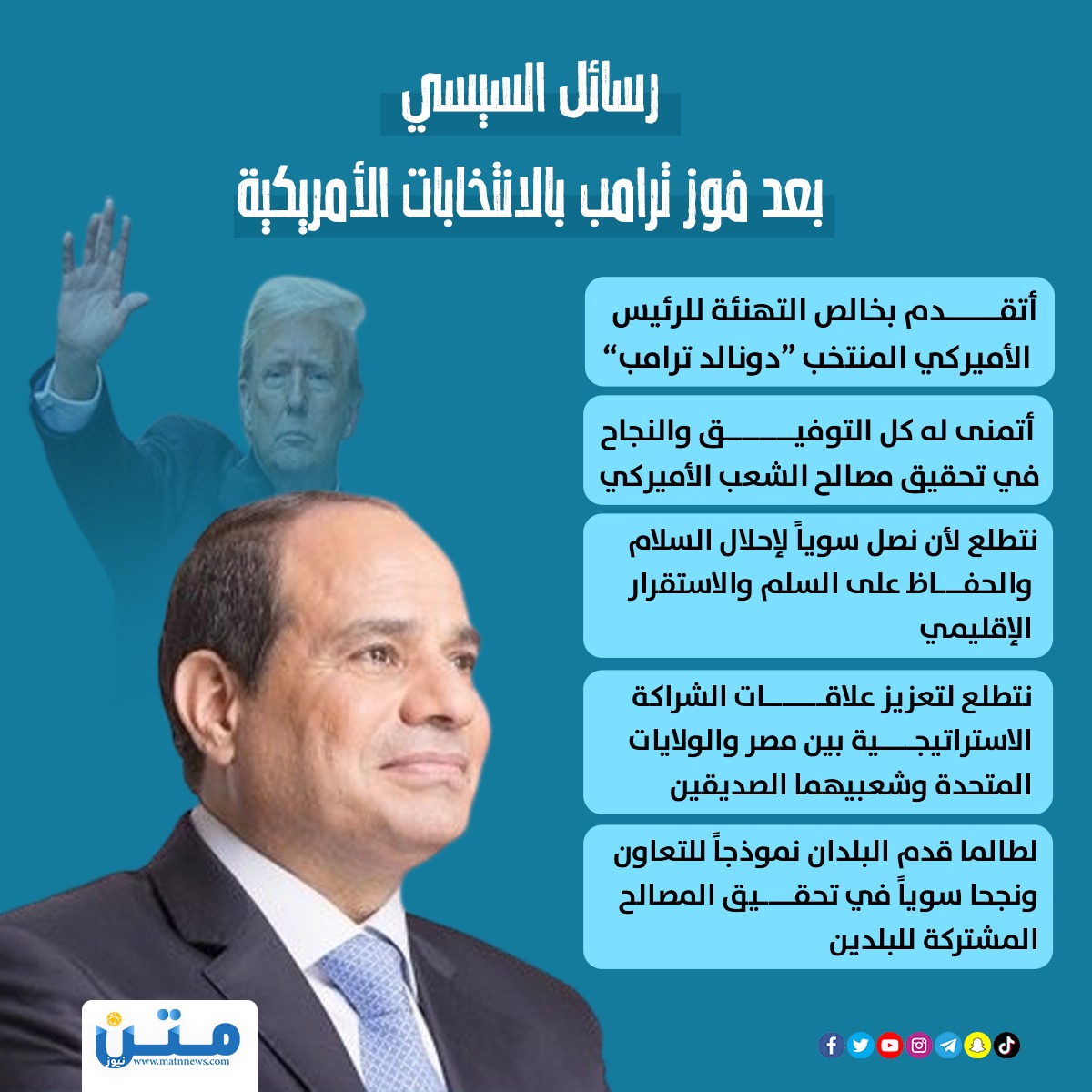 رسائل السيسي بعد فوز ترامب بالانتخابات الأمريكية (إنفوجراف)