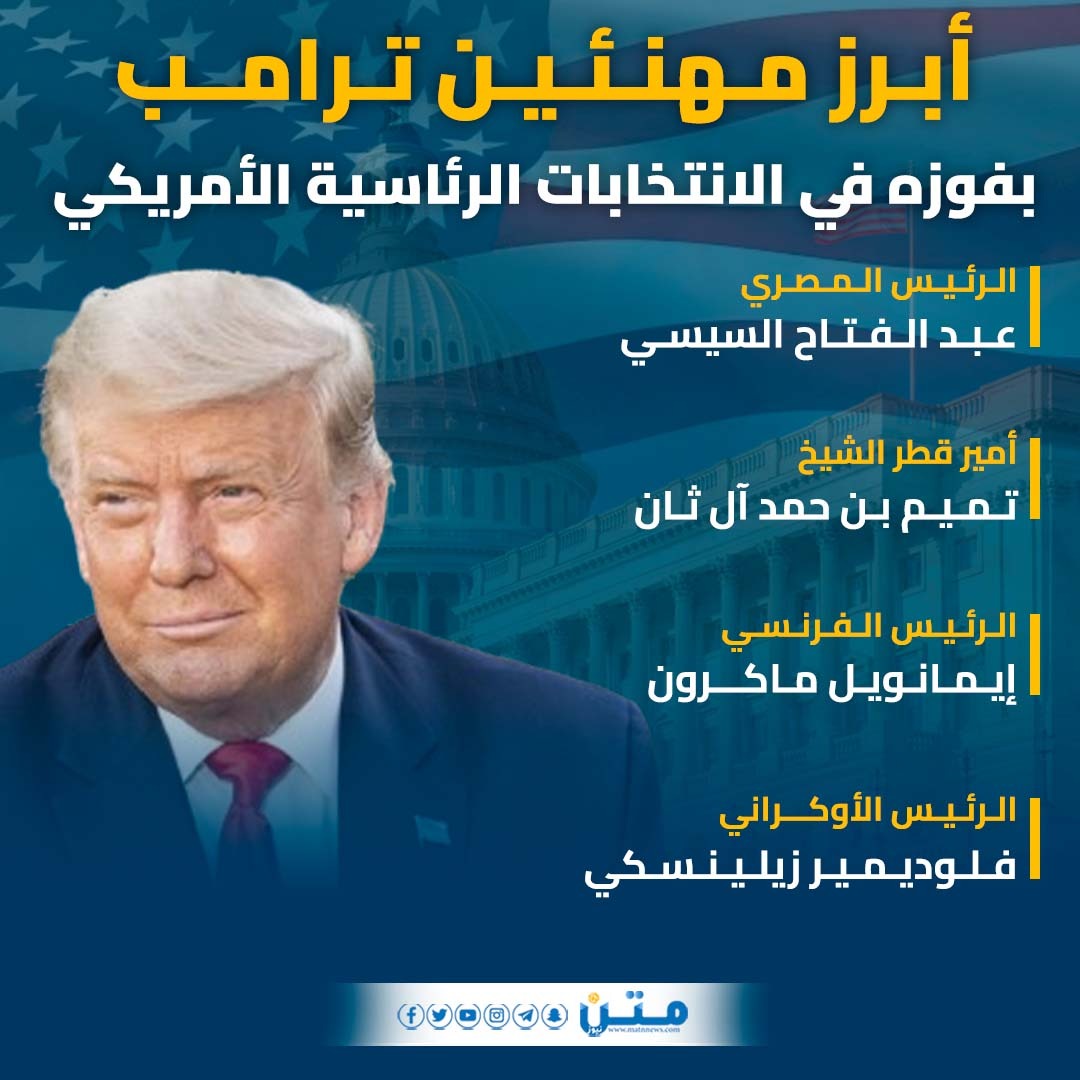أبرز مهنئين ترامب بفوزه في الانتخابات الرئاسية الأمريكي (إنفوجراف)