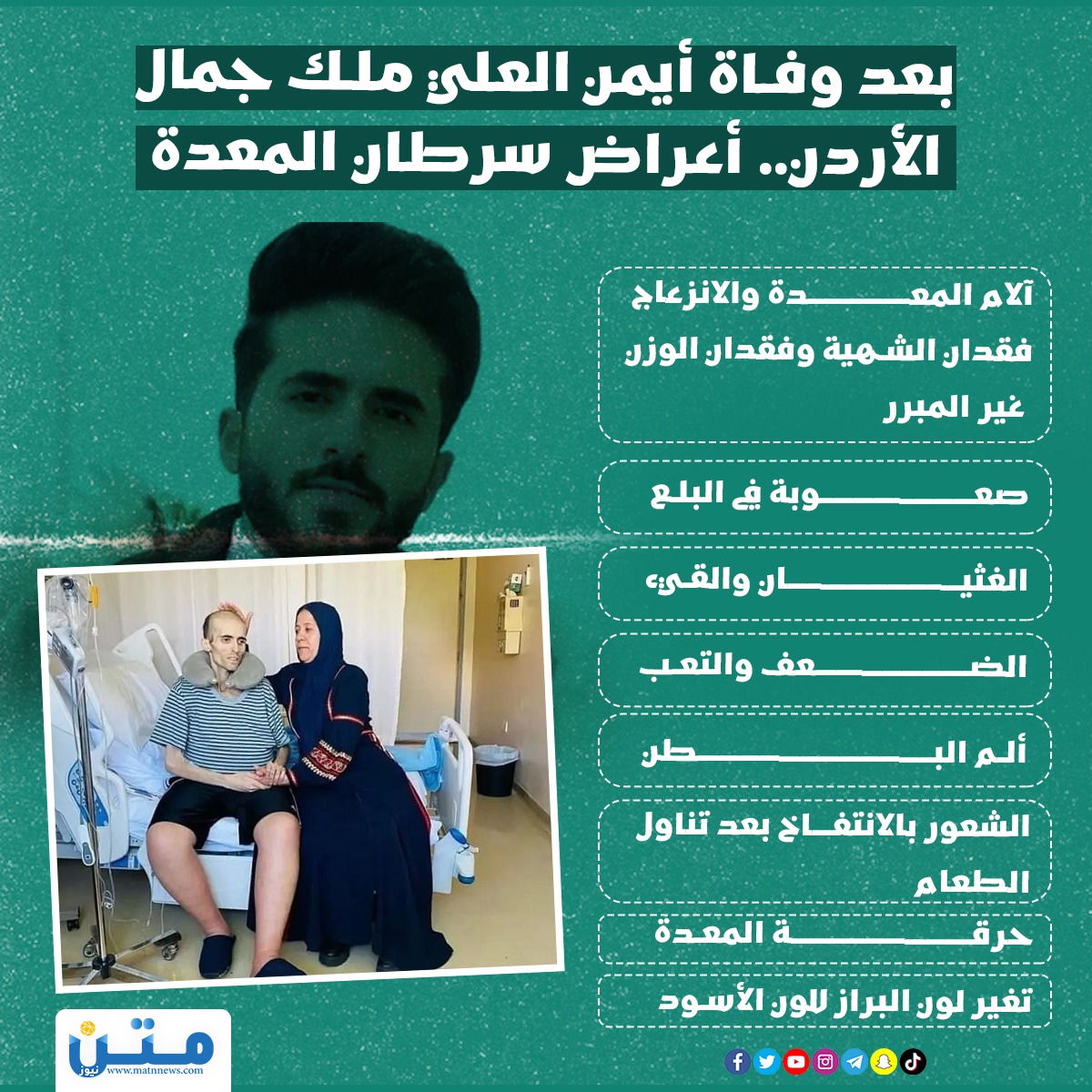 بعد وفاة أيمن العلي ملك جمال الأردن.. أعراض سرطان المعدة (انفوجراف)