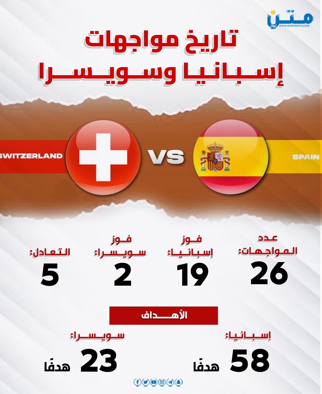 تاريخ مواجهات إسبانيا وسويسرا (انفوجراف) الإثنين 18/نوفمبر/2024 - 09:01 م 11/18/2024 9:01:01 PM انفوجراف متن شارك طباعة عدد المواجهات: 26فوز إسبانيا: 19تغلب سويسرا: 2التعادل: 5الأهدافإسبانيا: 58 هدفًاسويسرا: 23 هدفًا شارك سويسرا مواجهات إنفوجراف تاريخ يسرا التعادل اهداف