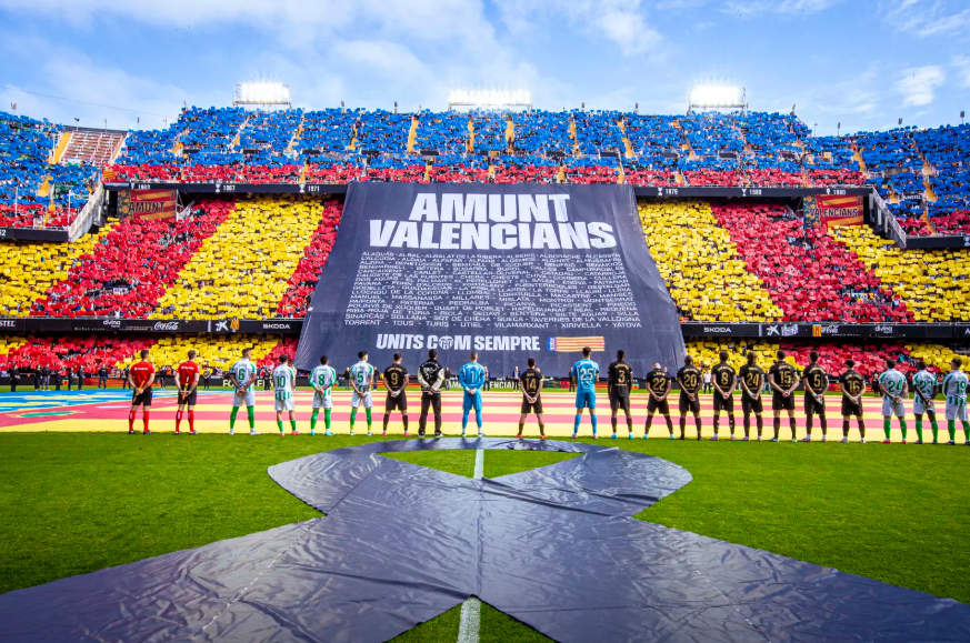 وبعد أكثر من 3 أسابيع، عادت الحياة إلى كرة القدم في مدينة فالنسيا، عندما خاض نادي فالنسيا أول مباراة على ملعبه بعد الكارثة الأليمة، وذلك باستقباله ريال بيتيس لحساب الجولة 14 من الليجا.