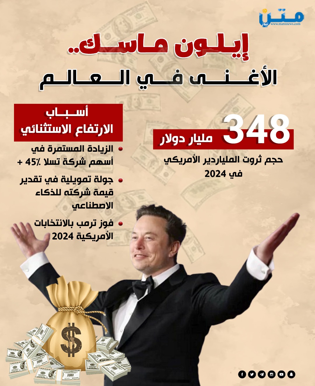 إيلون ماسك.. الأغنى في العالم (انفوجراف)