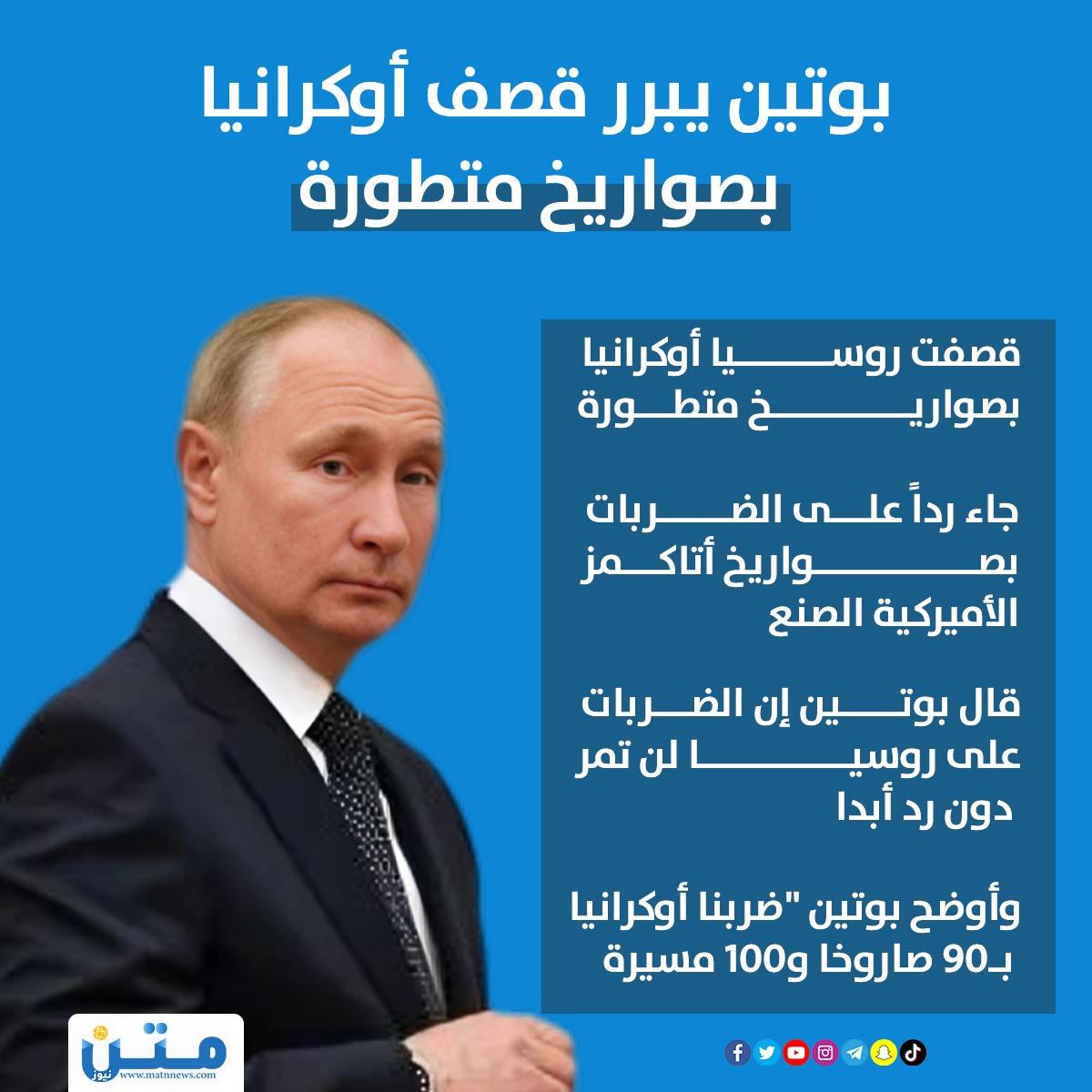 بوتين يبرر قصف أوكرانيا بصواريخ متطورة (إنفوجراف)