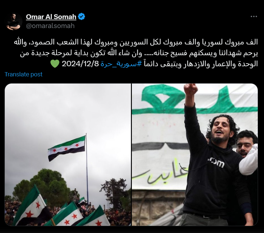 أول تعليق من عمر السومة بعد سقوط نظام بشار الأسد