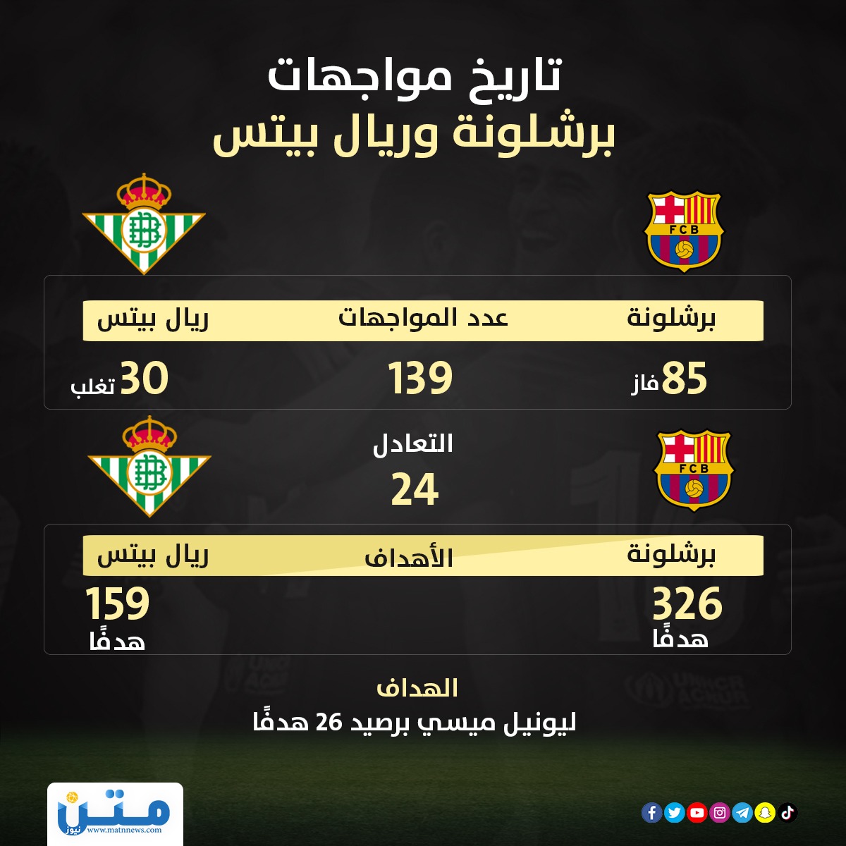 تاريخ مواجهات برشلونة وريال بيتس (انفوجراف)