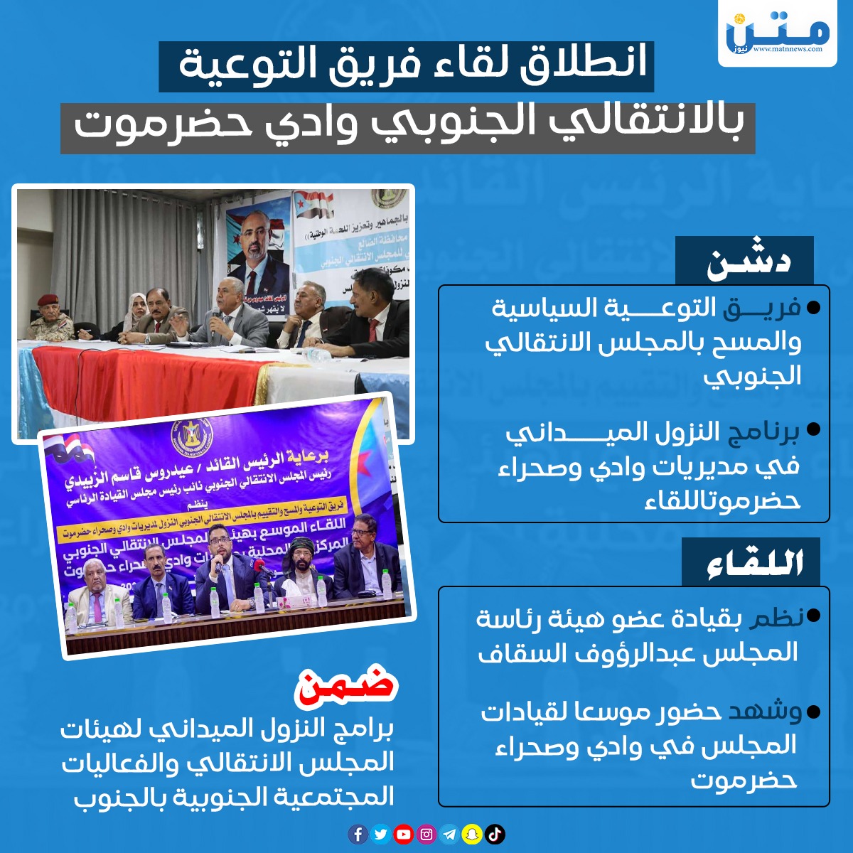 انطلاق لقاء فريق التوعية بالانتقالي الجنوبي وادي حضرموت (انفوجراف)