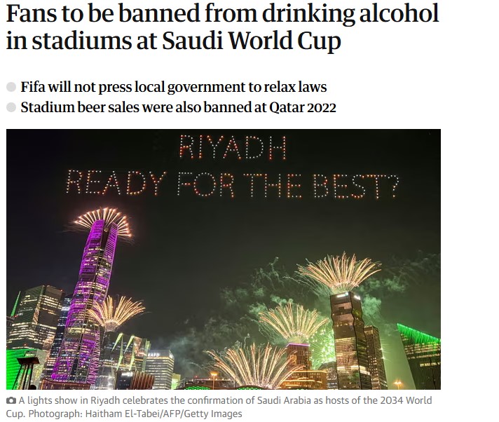 تقرير إنجليزي: منع الكحول بالملاعب السعودية في كأس العالم 2034