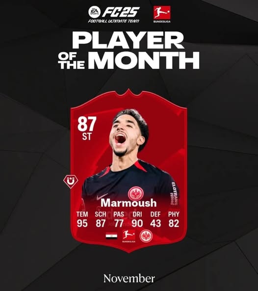 وتعتبر هذه هي المرة الثانية التي يتوج فيها عمر مرموش بجائزة لاعب الشهر في الدوري الألماني، هذا الموسم، بعدما حصل عليها من قبل في شهر سبتمبر.
