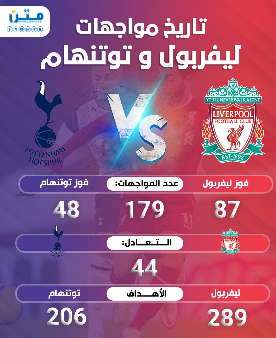 تاريخ مواجهات ليفربول وتوتنهام (انفوجراف)