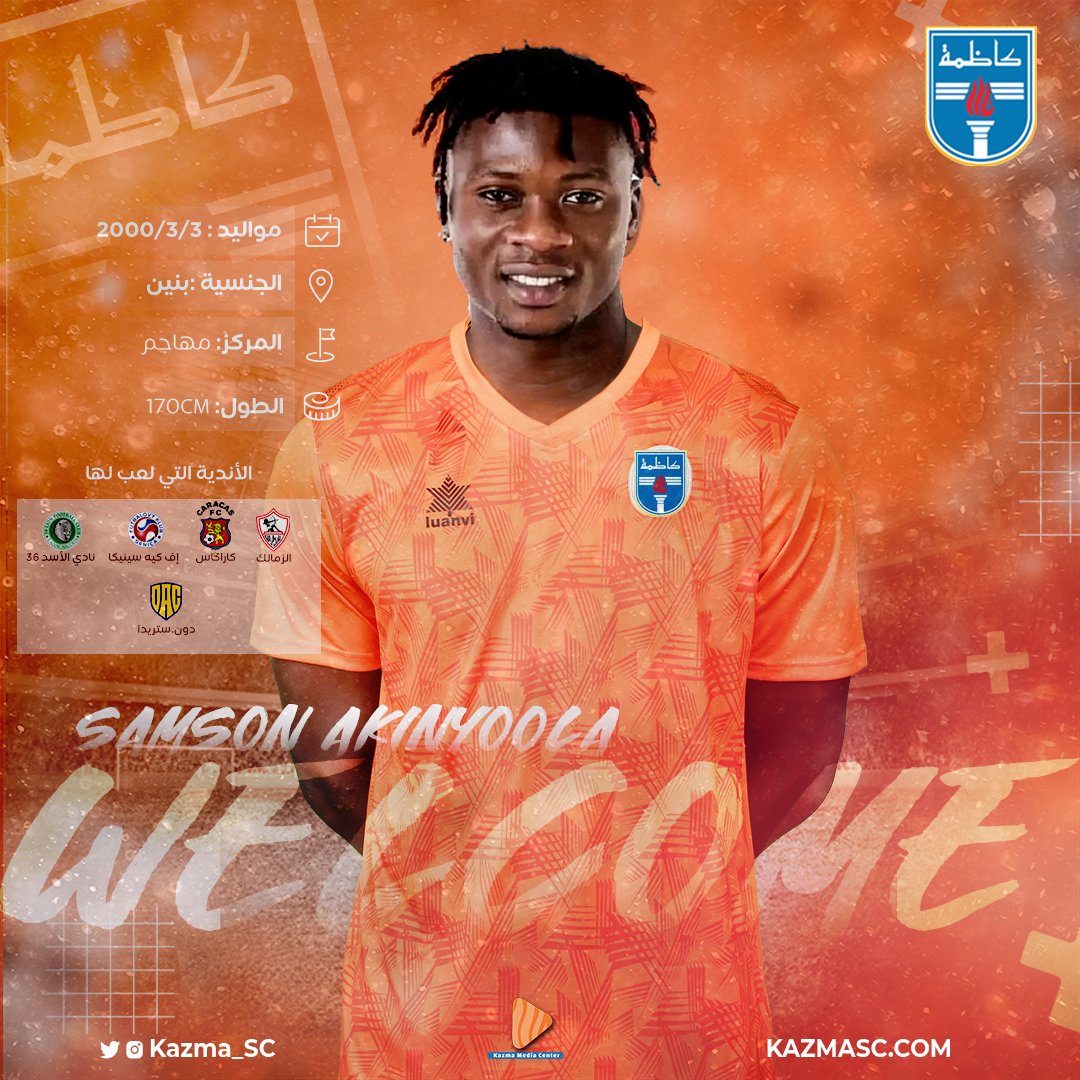 أعلن نادي كاظمة الكويتي، بشكل رسمي عن ضم البنيني سامسون أكينيولا مهاجم الزمالك المصري السابق، بعد فسخ عقده بالتراضي مع القلعة البيضاء خلال الفترة الماضية.