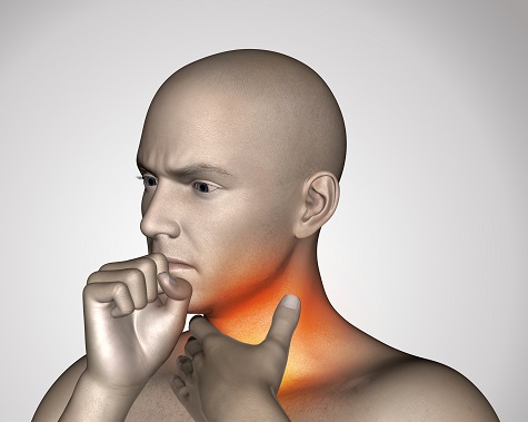 - صوت أجش وألم في الحلق لم يتحسن.