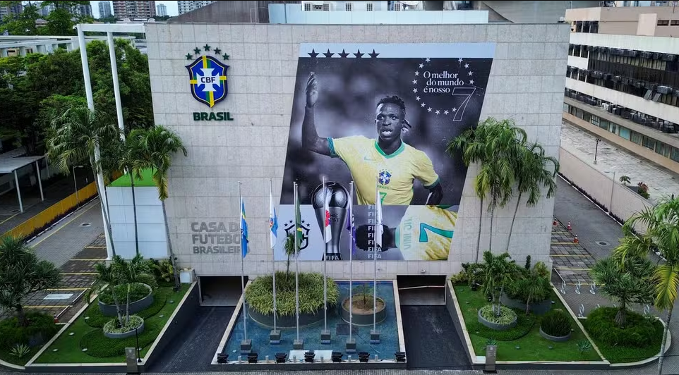 تكريما له.. الاتحاد البرازيلي يضع صورة فينيسيوس على واجهة مقره