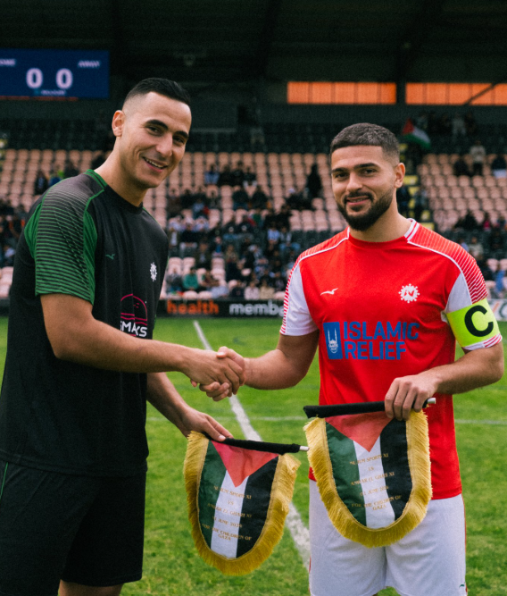 وأقيمت المباراة على ملعب ذا هايف الخاص بفريق بيرنت الإنجليزي وذهبت العوائد بالكامل إلى دعم الشعب الفلسطيني ضد الإبادة الجماعية التي يمارسها الاحتلال الإسرائيلي.