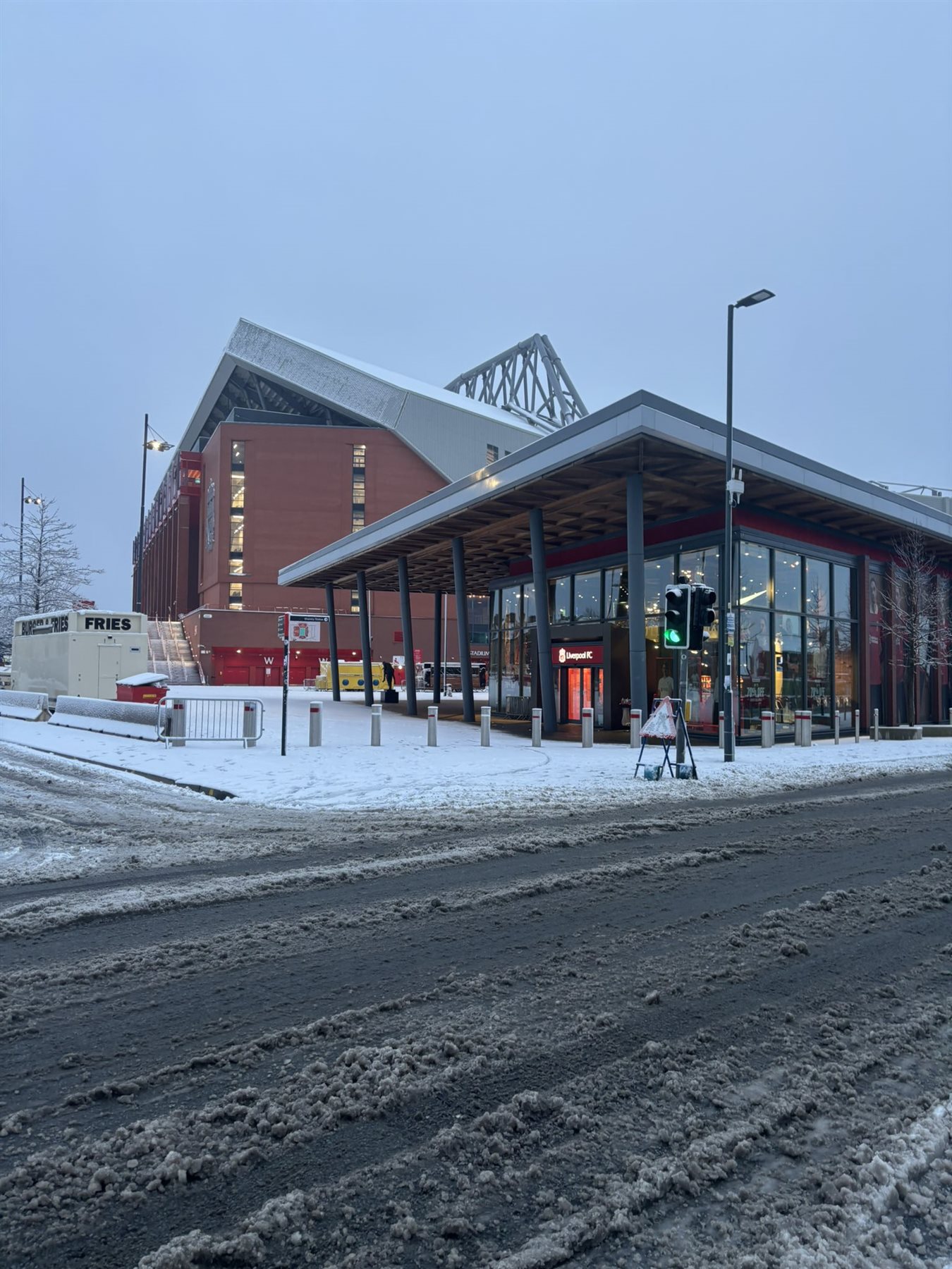 الثلوج تحاصر ملعب آنفيلد قبل انطلاق مباراة ليفربول ومانشستر يونايتد