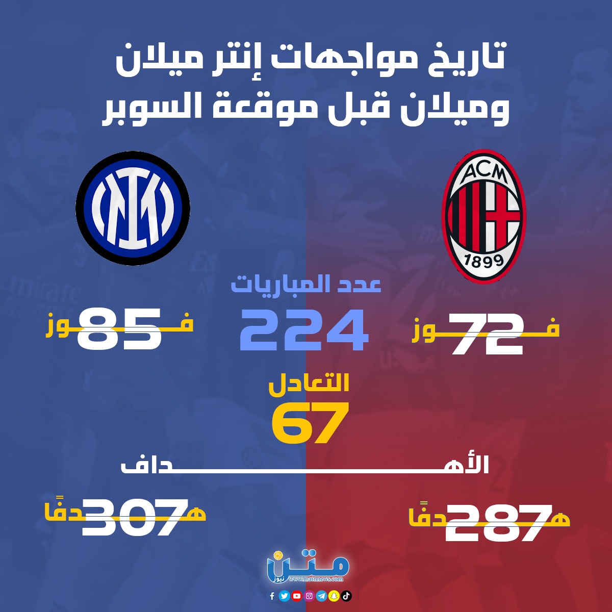 تاريخ مواجهات إنتر ميلان وميلان قبل موقعة السوبر (انفوجراف)