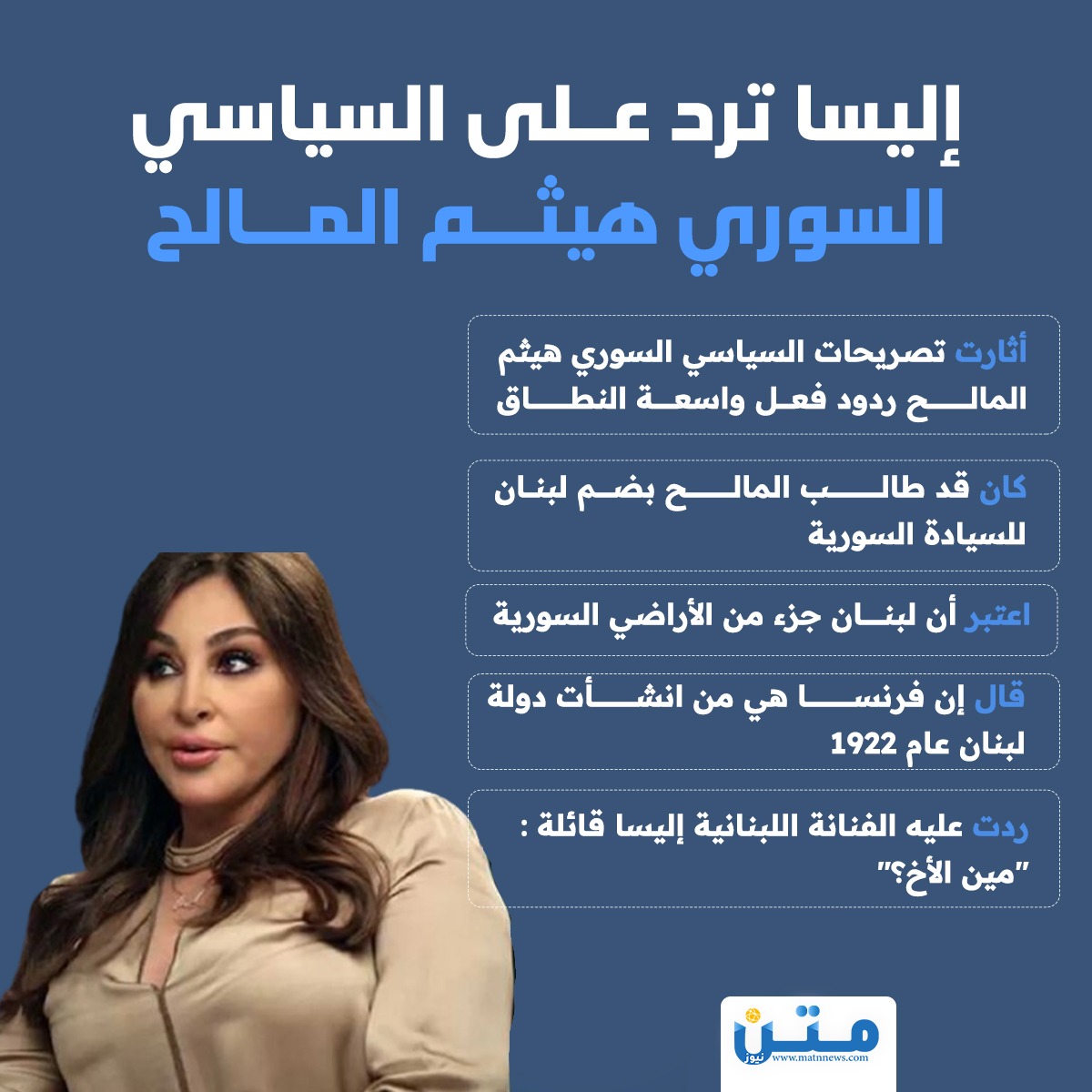 إليسا ترد على السياسي السوري هيثم المالح (إنفوجراف)