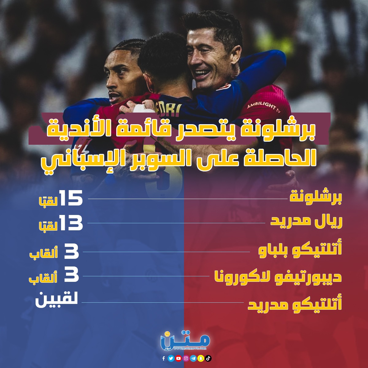 برشلونة يتصدر قائمة الأندية الحاصلة على السوبر الإسباني (انفوجراف)