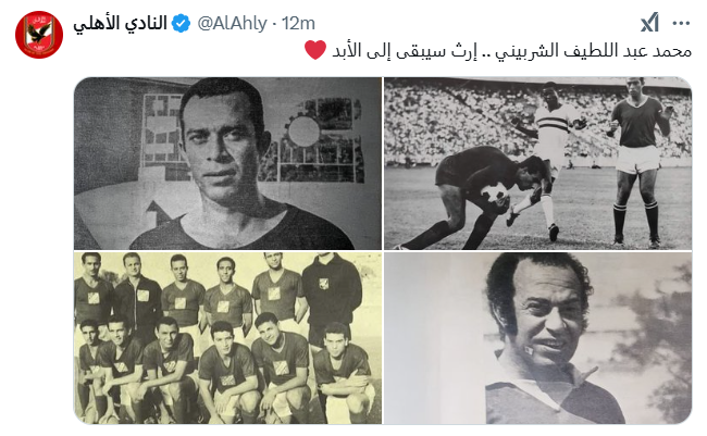 كما كتبت الصفحة الرسمية للنادي الأهلي عن ميمي الشربيني: "محمد عبد اللطيف الشربيني.. إرث سيبقى إلى الأبد".