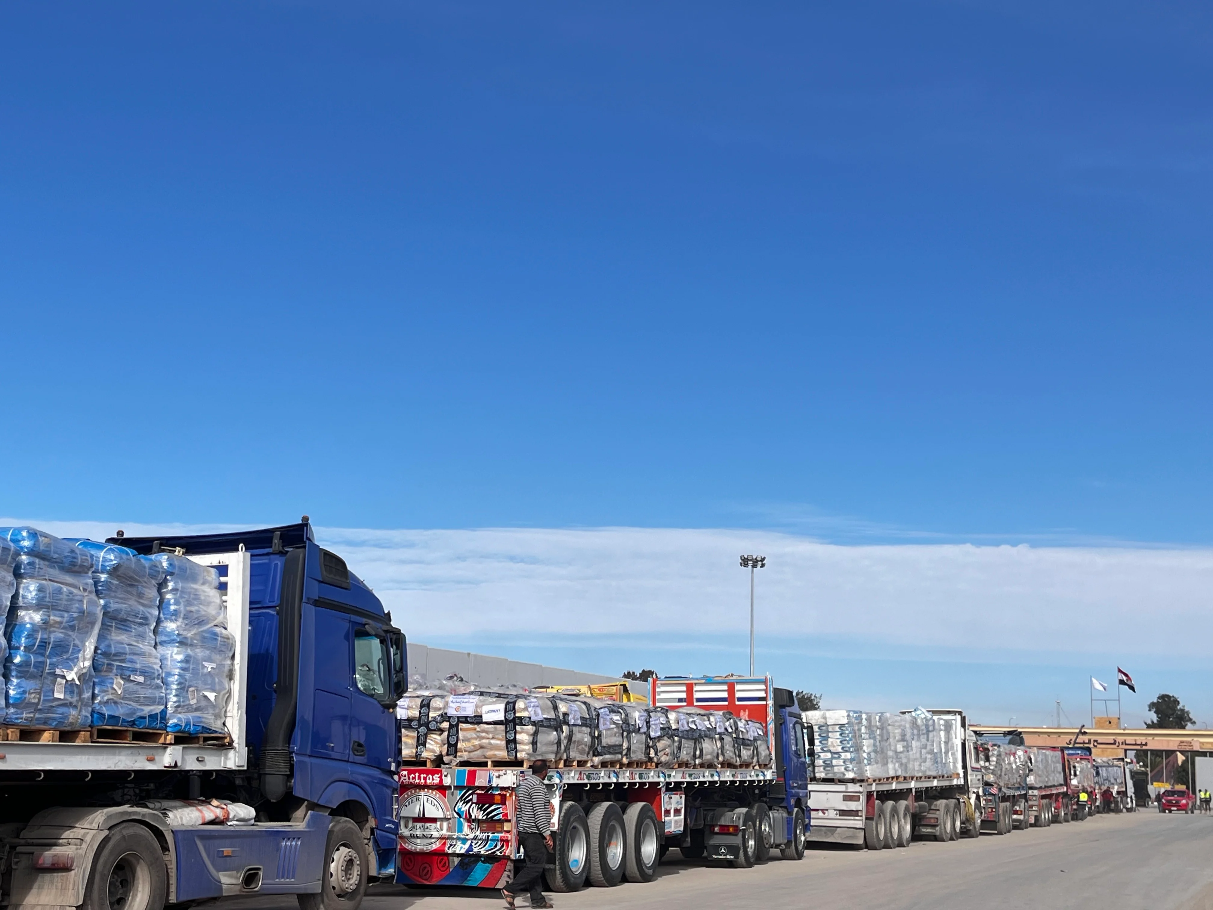 شاهد الآن.. تواصل تدفق المساعدات عبر معبر رفح فى طريقها إلى قطاع غزة