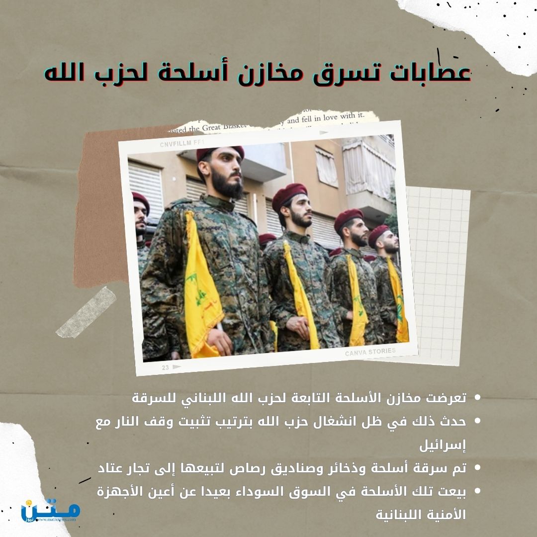 - تعرضت مخازن الأسلحة التابعة لحزب الله اللبناني للسرقة