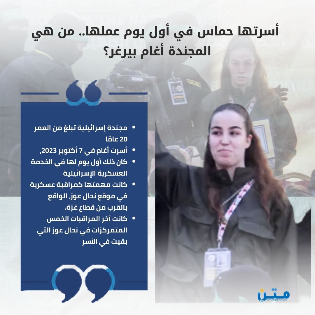 أسرتها حماس بأول يوم عمل لها.. من هي المجندة أغام بيرغر؟ (إنفوجراف)