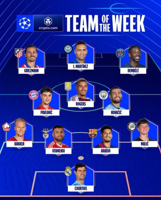 وجاء التشكيل الأفضل في جولة دوري أبطال أوروبا، كالتالي: