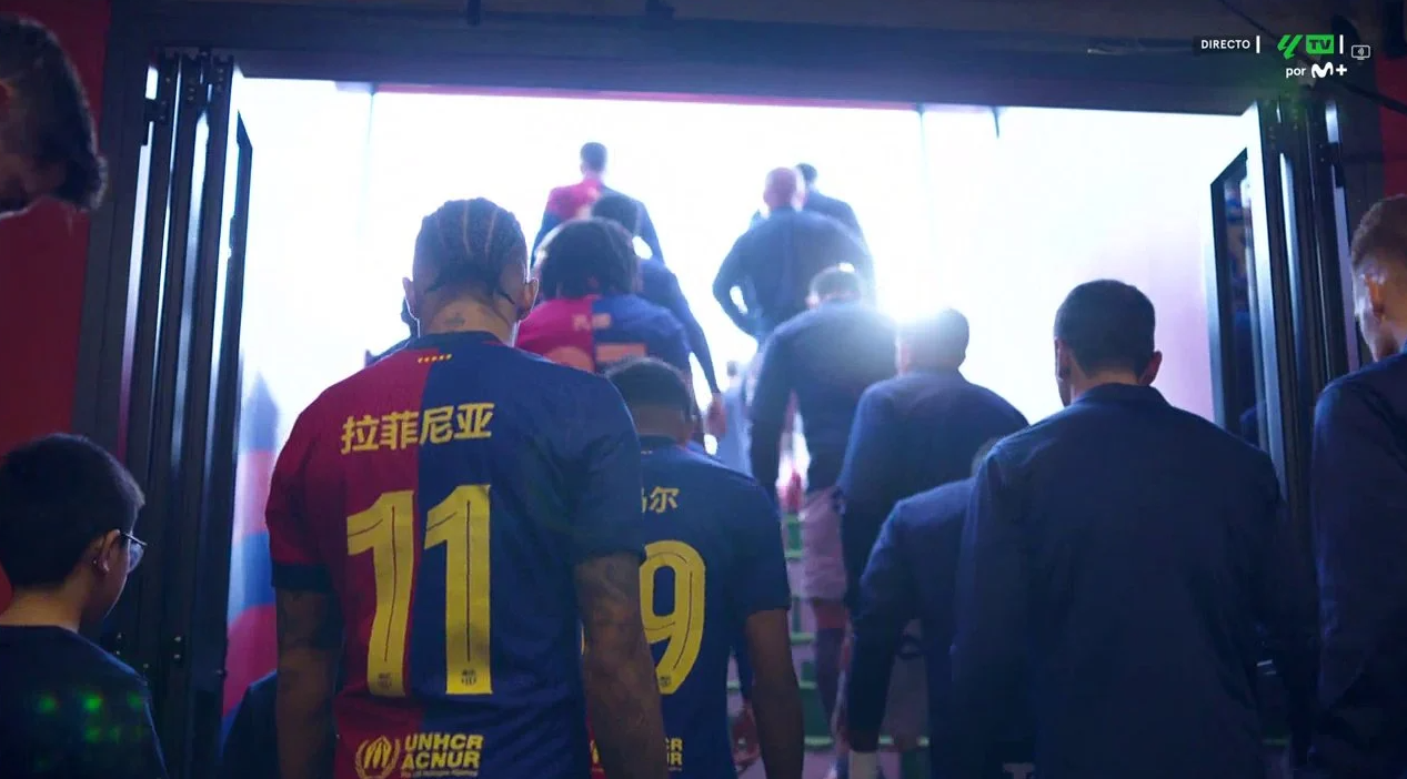 وكشفت الصفحة الرسمية لنادي برشلونة، عن سر وضع أسماء اللاعبين باللغة الصينية خلال دخول مواجهة ألافيس.