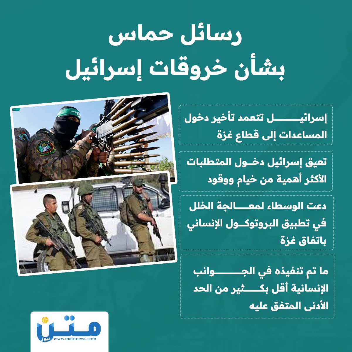 رسائل حماس بشأن خروقات إسرائيل (إنفوجراف)